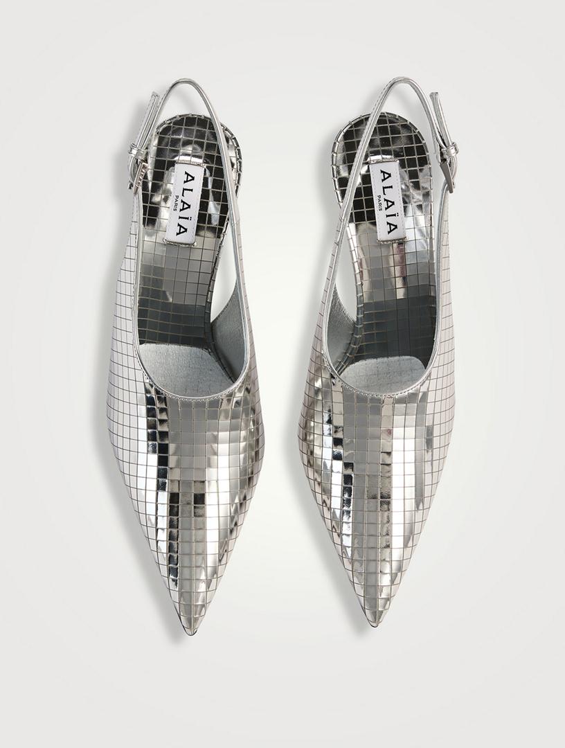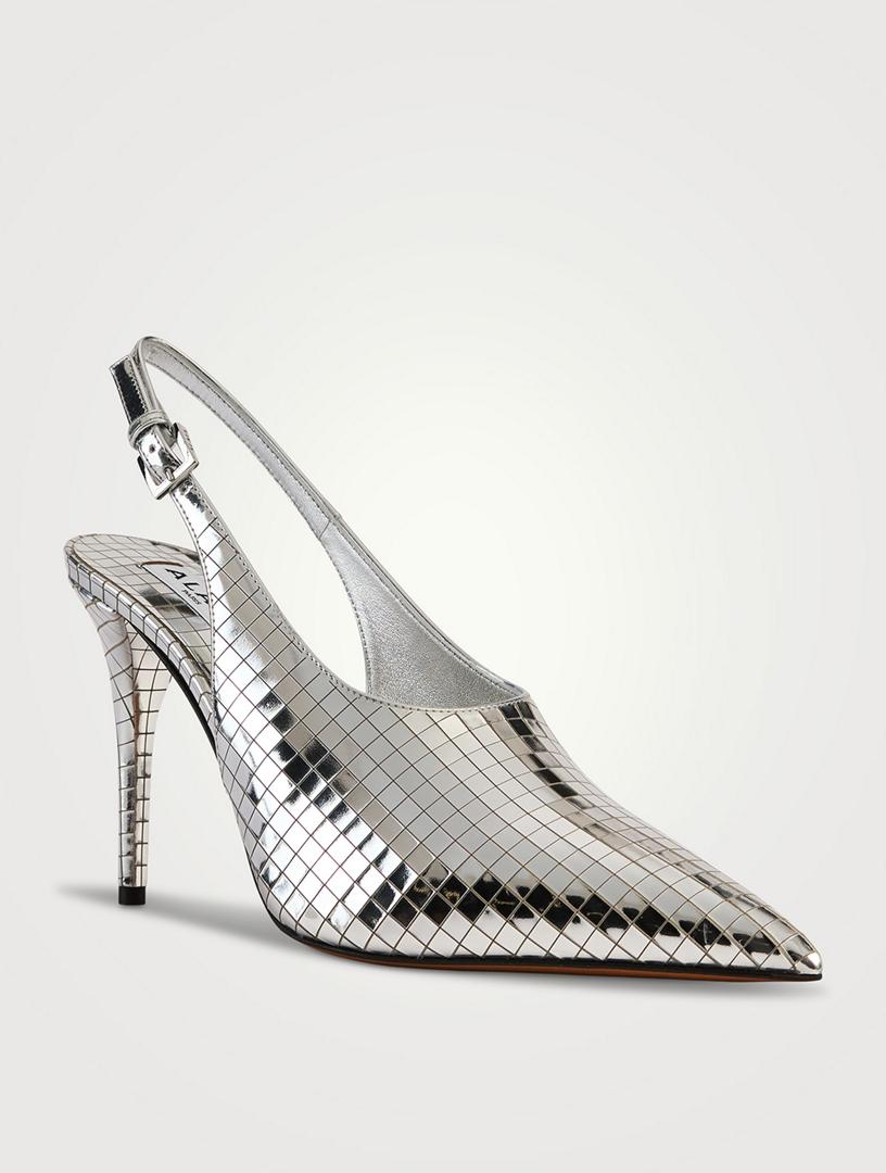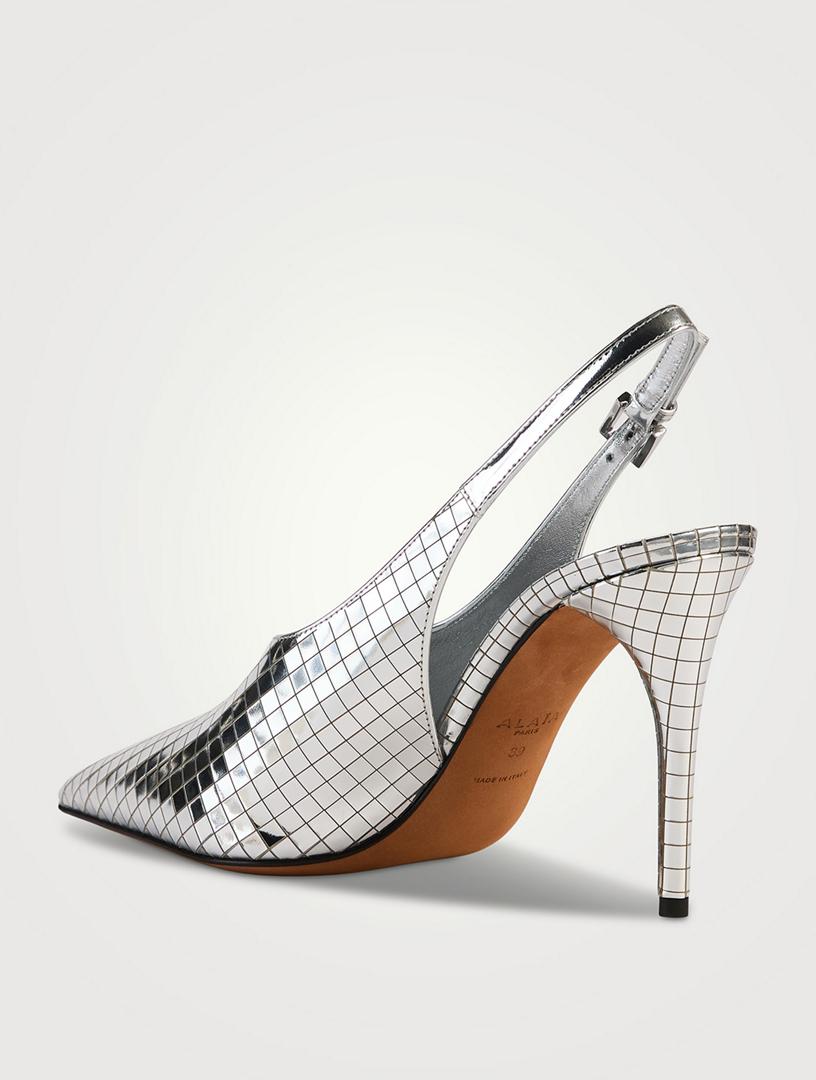 ALAÏA Art Deco Mirrored Leather Slingback Pumps