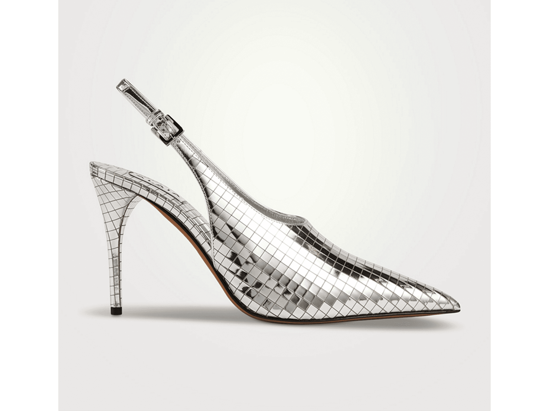 These party-ready pumps are crafted in mirror-effect laminated calfskin leather, recalling the look of a disco ball. Set on a slim heel, they are designed with a high vamp and a buckled slingback strap.