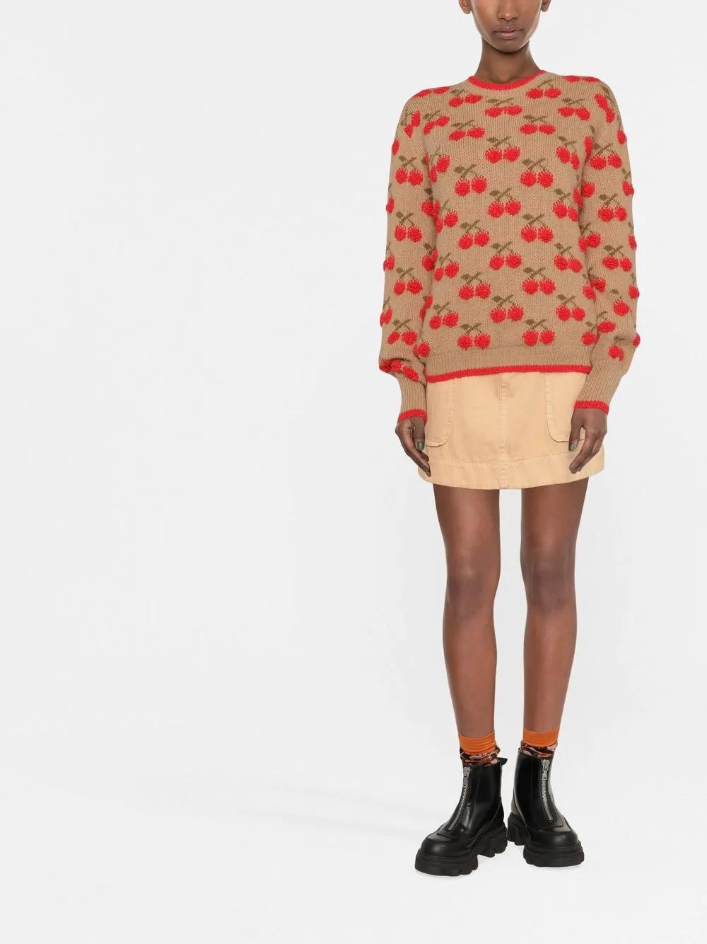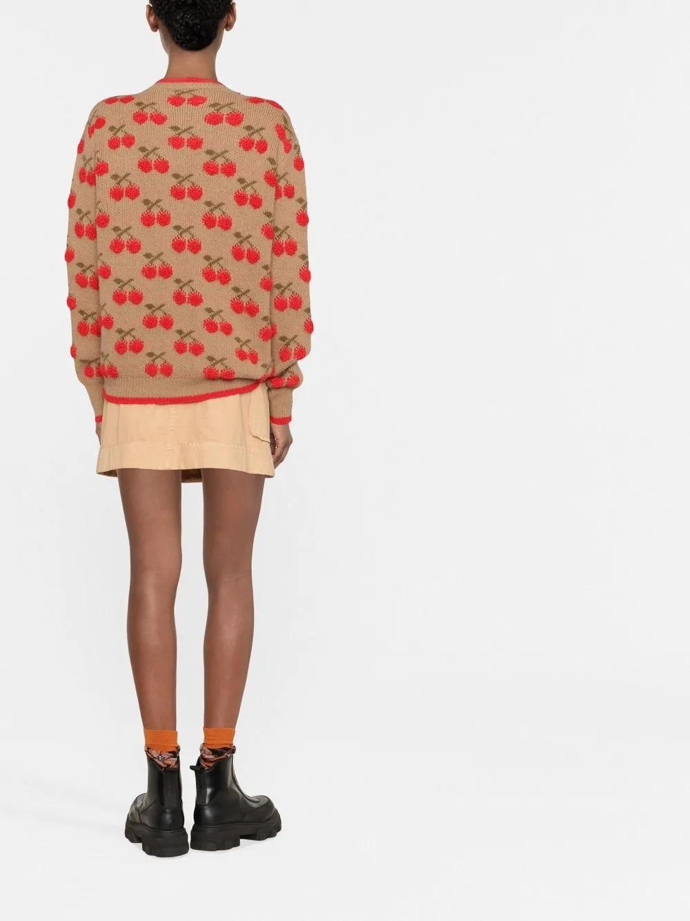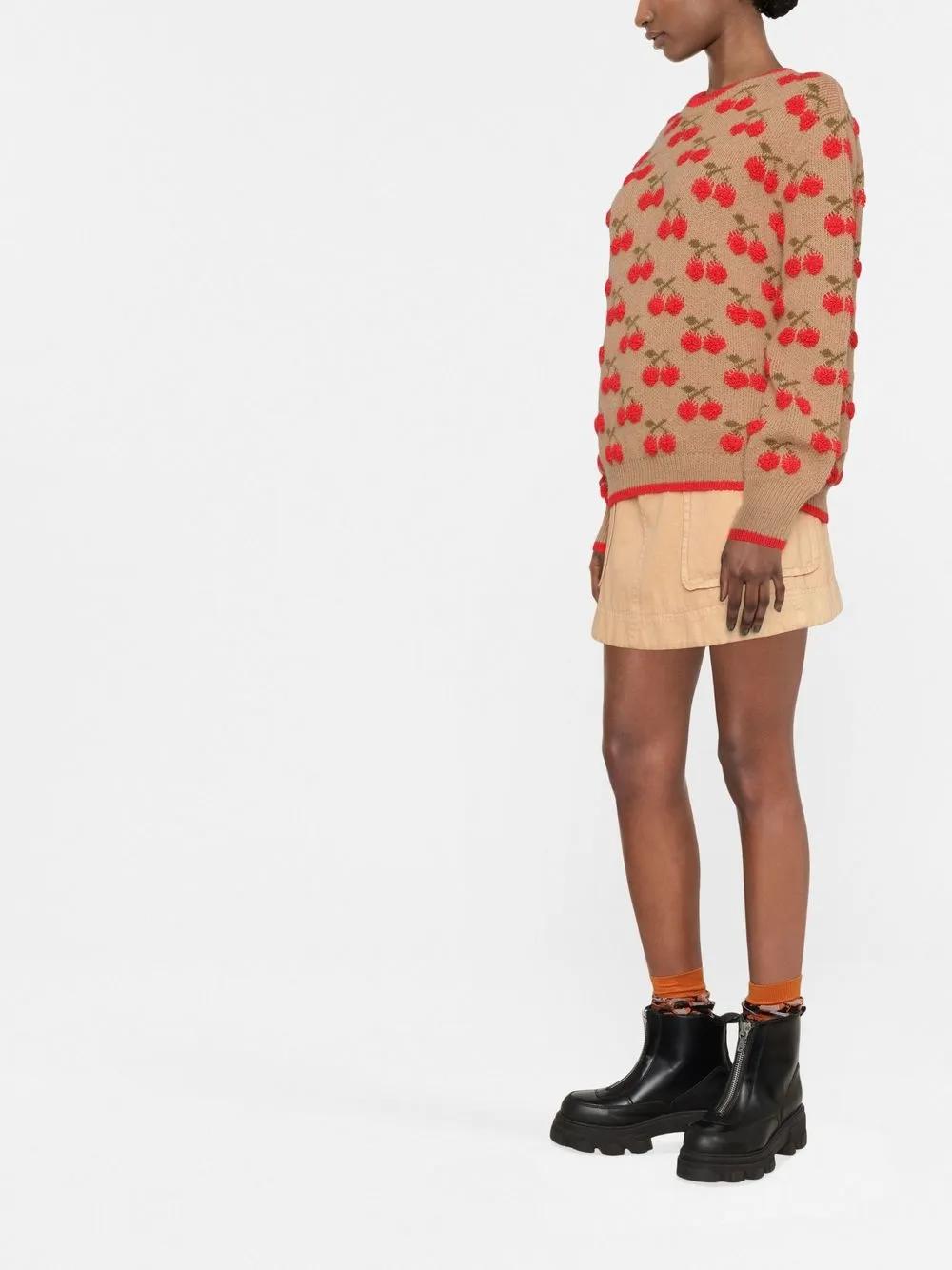 La DoubleJ updates a classic crew neck jumper with this bold design. This cherry intarsia-knit construction is presented in a camel brown and bright red colourway, offering a bold and contemporary style.