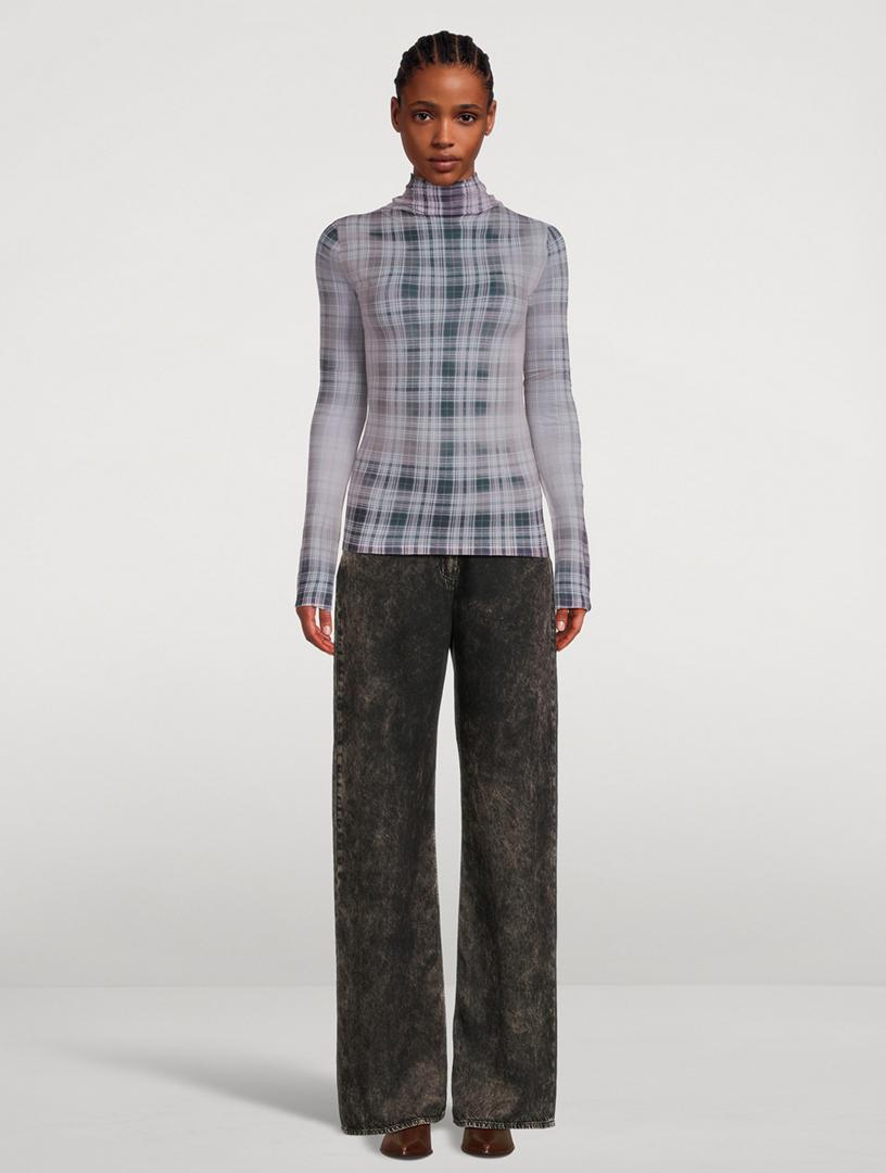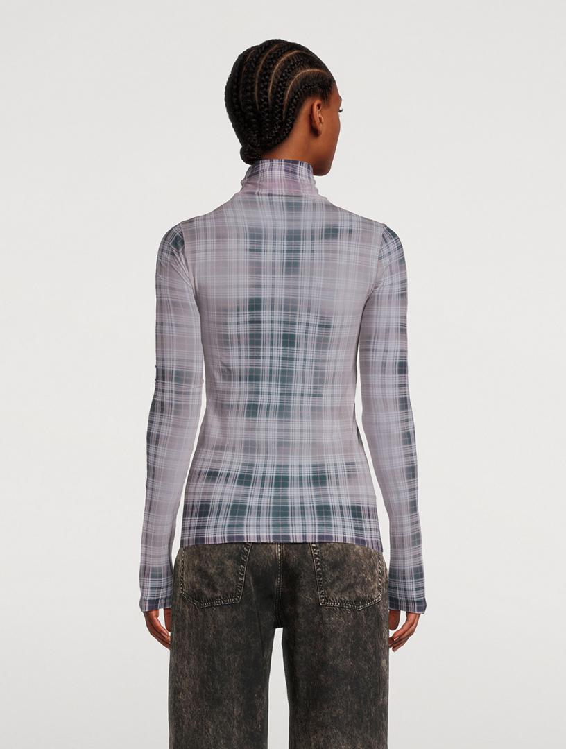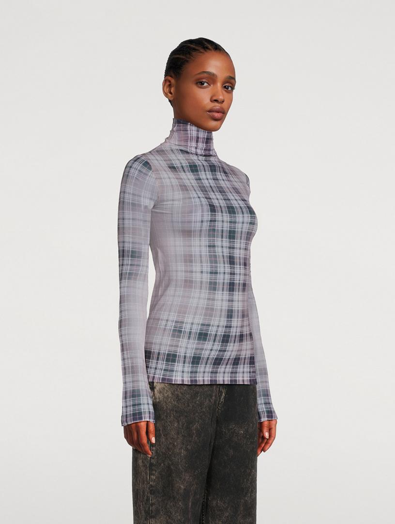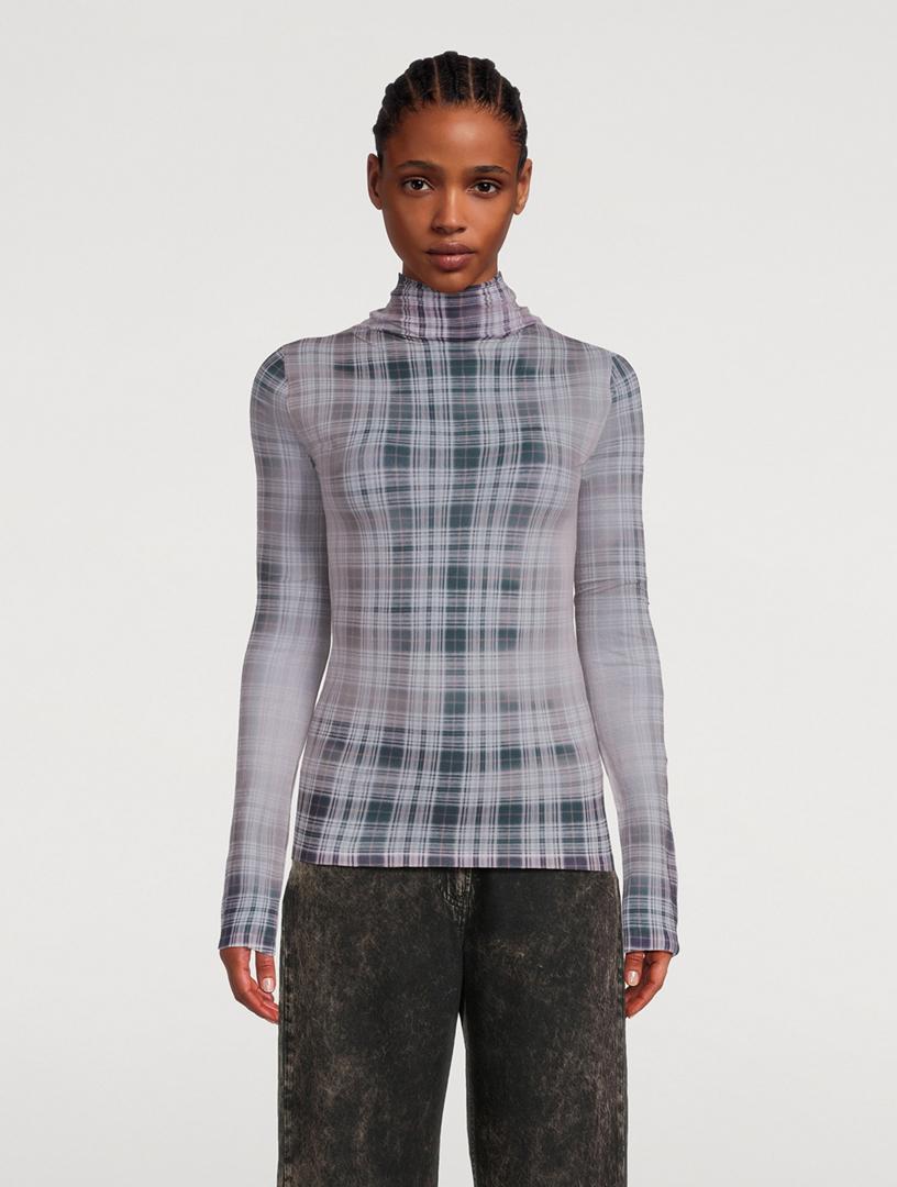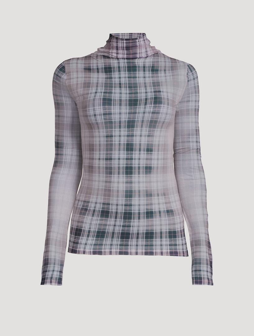 Made in Italy, this seamless top is crafted from fine polyamide fibres in tubular machines with a smooth and matte finish. Detailed with an allover faded plaid motif, it is cut to a slim fit with elongated sleeves, a high neckline, and a regular length. 100% Nylon Turtleneck Long-sleeve Pull-on Made in Italy