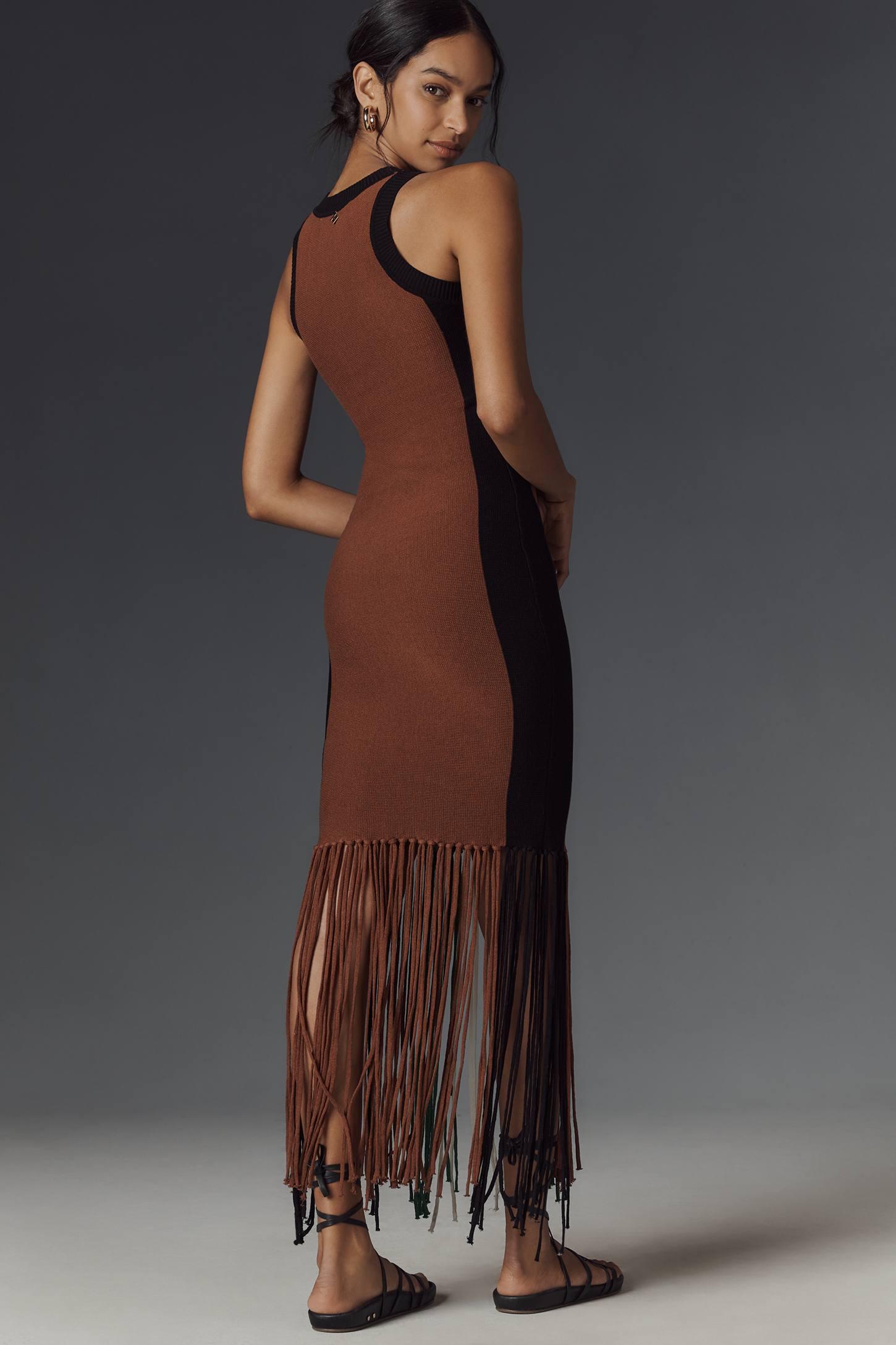 Silvian Heach Sleeveless Fringe Sweater Midi Dress