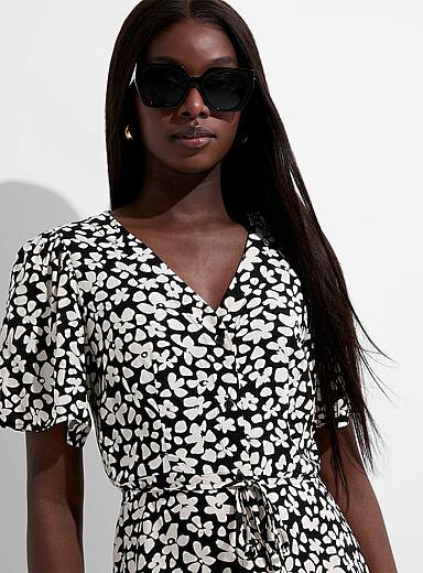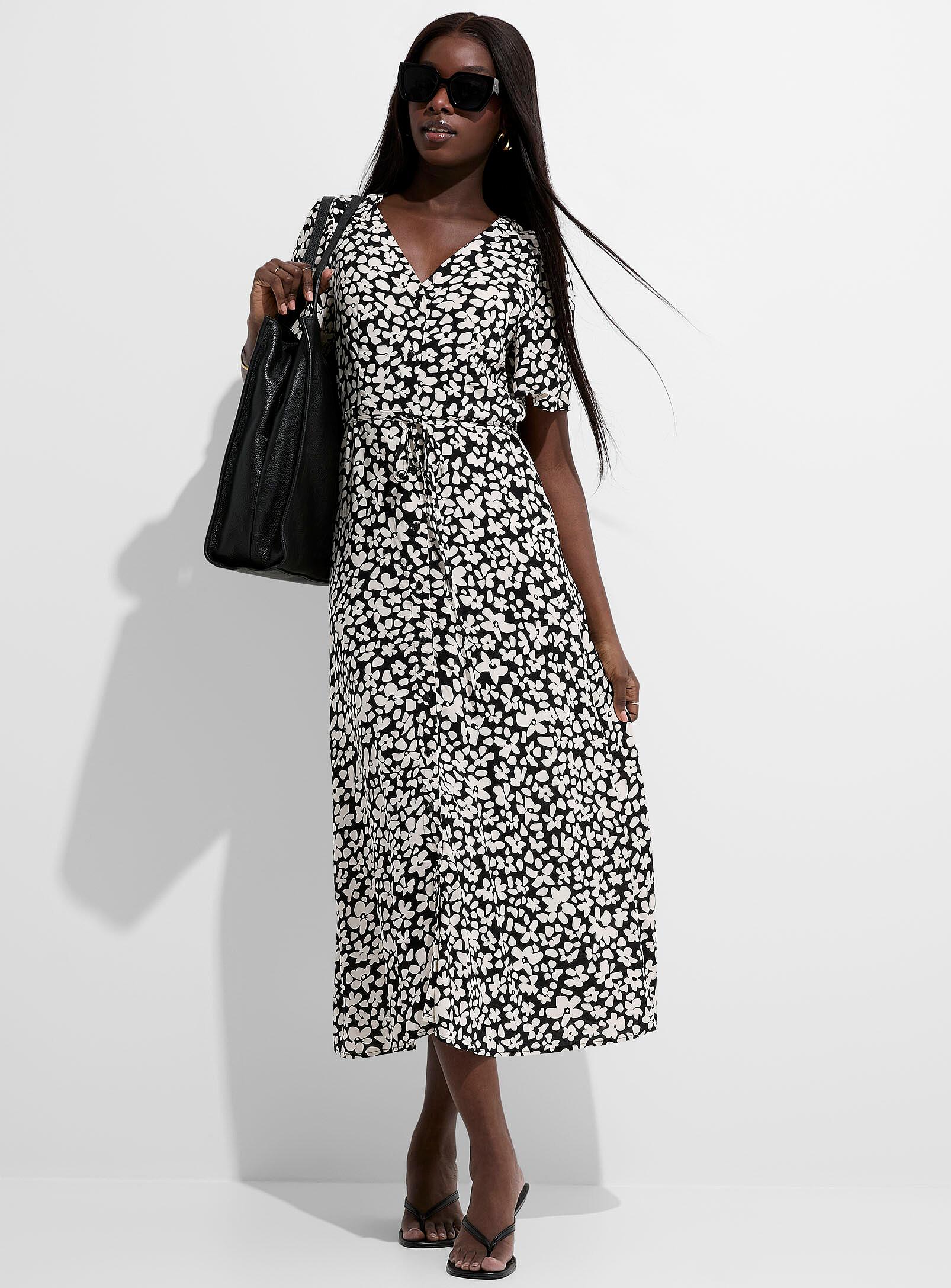 Vero Moda - Buttoned white flowers V-neck maxi dress Vero Moda Vero Moda at Icône Light and fluid fabric Made from forest-conscious LENZING ECOVERO Viscose Unlined Long and straight fit V neck Short ruffle sleeves Removable tie-cord belt Full-length buttons down the front.