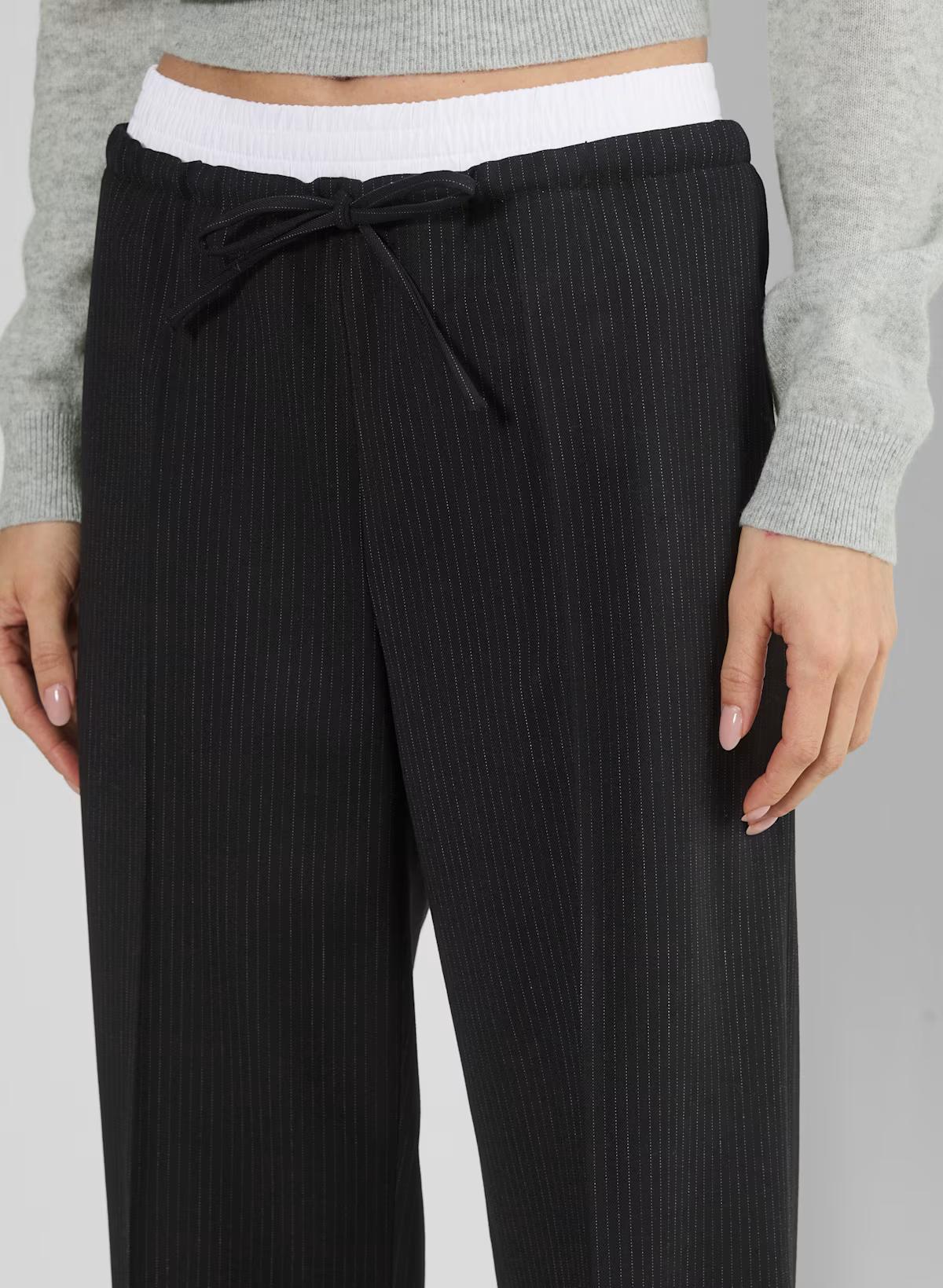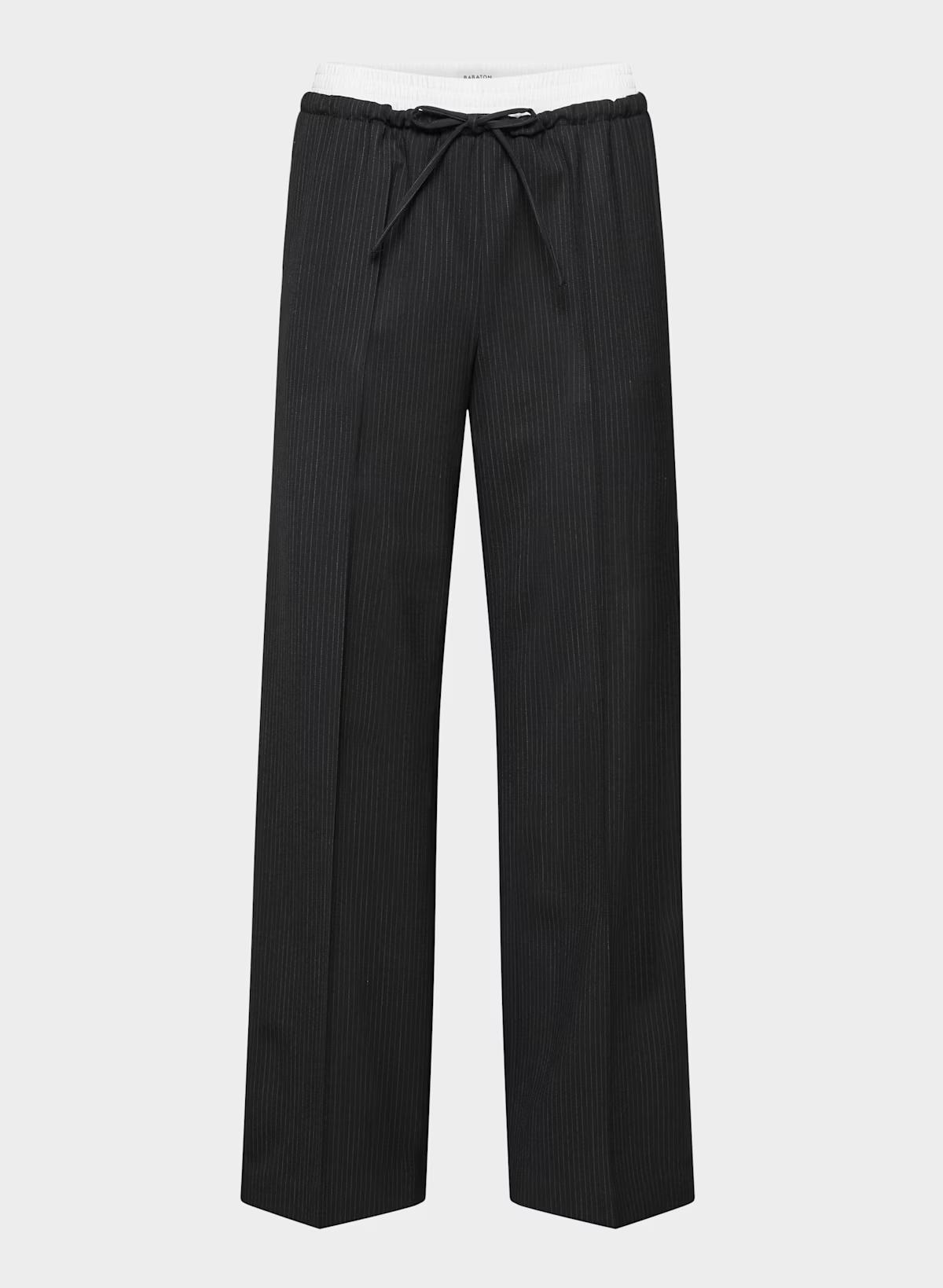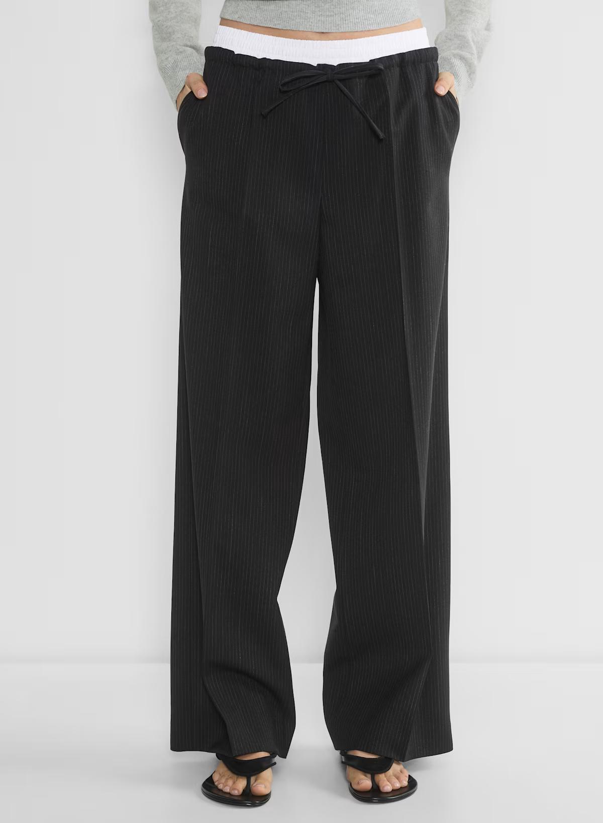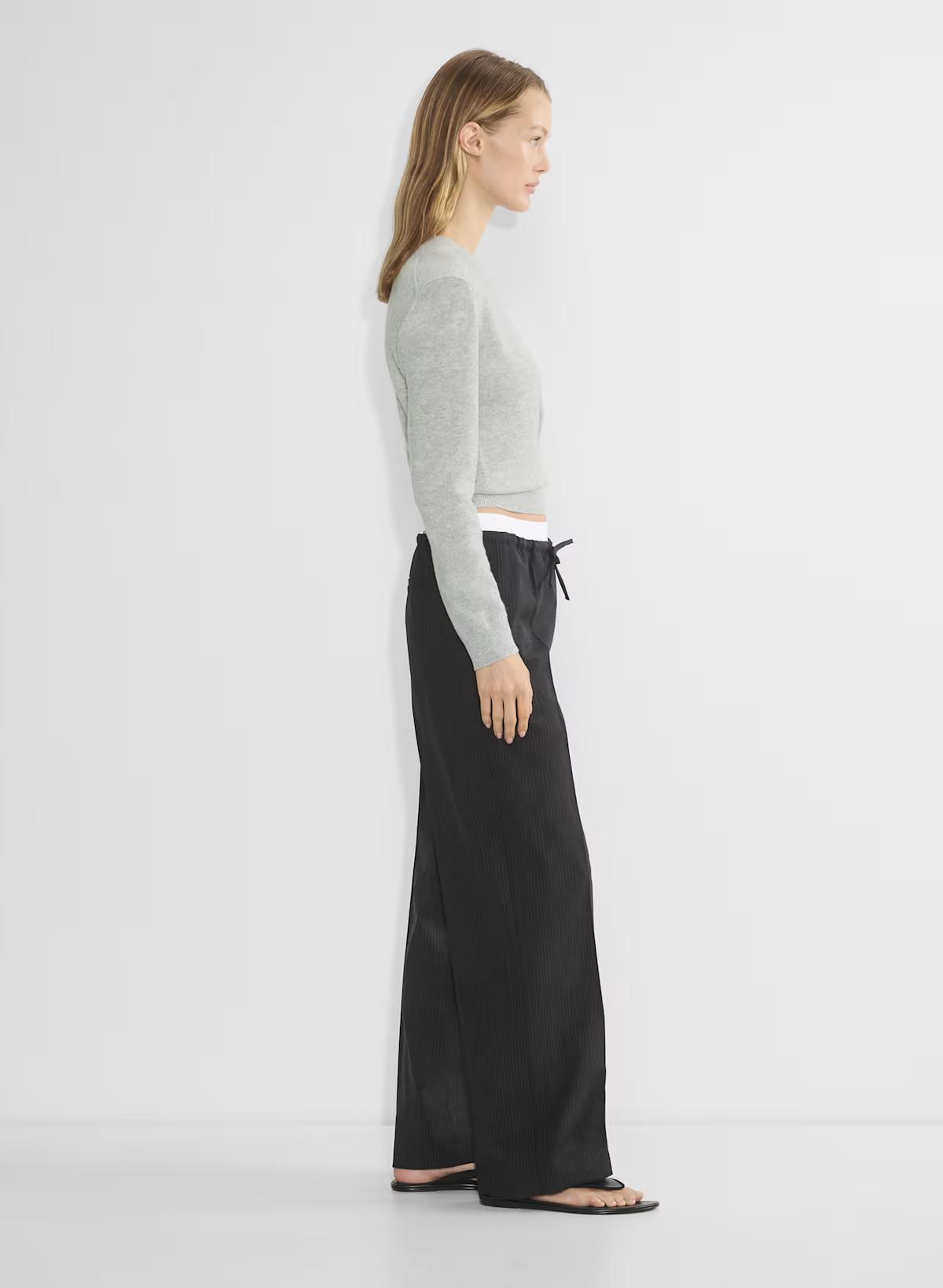 These are relaxed wide-leg pants with a cinchable drawcord and a contrasting double waistband. They're expertly tailored with City Wool — softly structured stretch wool twill for all-season, all-city wearability. This fabric is sourced from a premier Italian mill.