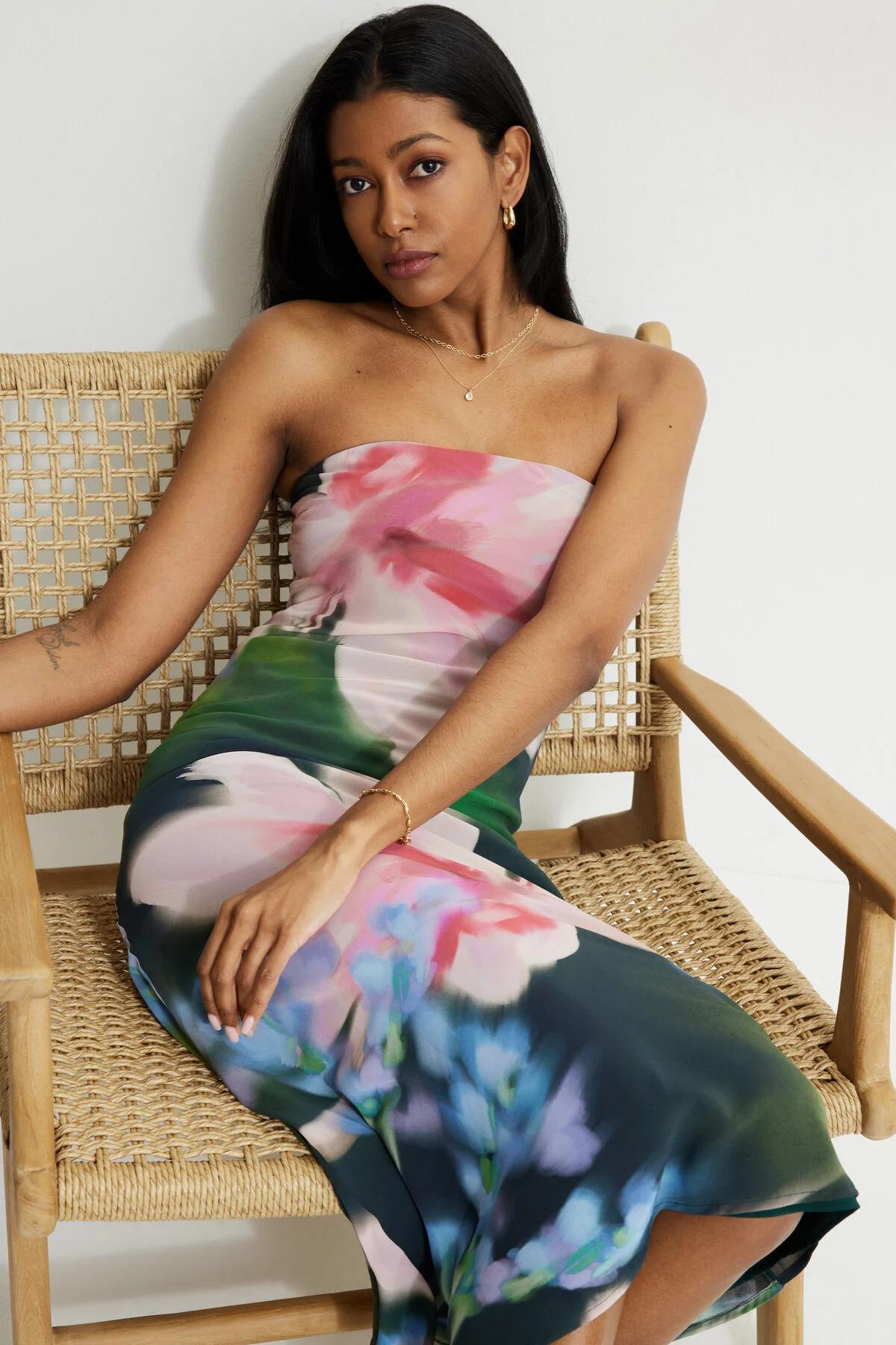 Cette robe maxi est confectionnée dans un tissu georgette léger et délicat conçu pour une silhouette ajustée et fluide. Élégante à chaque mouvement, agencez-la à des boucles d’oreilles pour une sortie nocturne. Caractéristiques - Col droit élastique - Doublée Taille et coupe - Coupe ajustée - La mannequin porte la taille TP Composition et entretien - 100 % polyester recyclé - Laver à la machine à l’eau froide - Importée