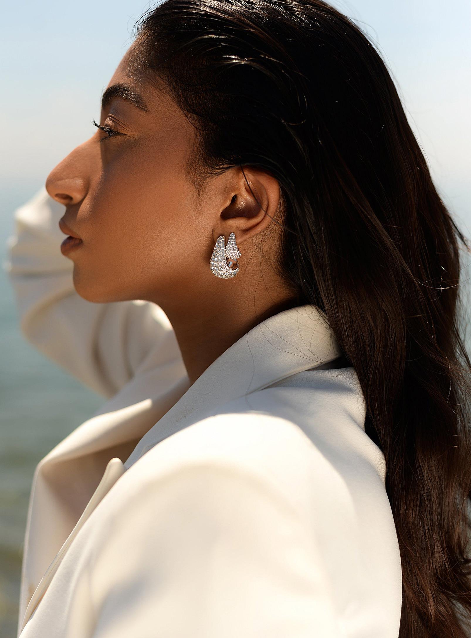 DRAE - Hira large earrings DRAE DRAE, a Canadian label at Simons These chunky teardrop-shaped pieces will give you the wow factor with their dazzling and captivating zirconia! 14K gold plating or silver plating Push back closure for pierced ears Made in Montréal Dimension Length: 2.5 cm Please note that online-only items are shipped directly from the supplier. Consequently, they are delivered separately from regular Simons products and may arrive within a different time frame. Additionally, the packaging may look different than what you normally receive from Simons.