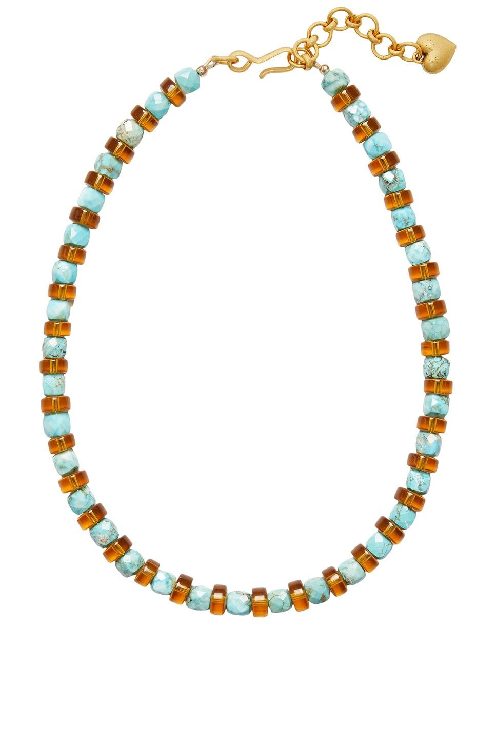 Beaded turquoise and glass necklace 24k antique gold-plated brass hook closure Please note, stones will have slight variations due to being natural materials Measures approx 15.5-17.5" / 44 cm in length Made in US