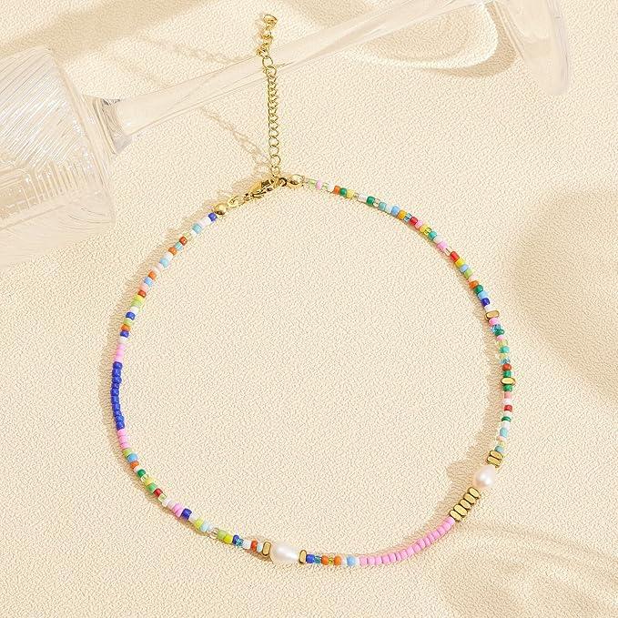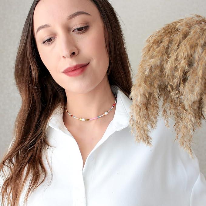 This aesthetic boho necklace is made of high quality glass beads, hematite natural stone and genuine freshwater pearls, the metal parts are made of stainless steel plated with 18K gold that will not fade and get rust. The materials are eco-friendly and able to wear for a long time.