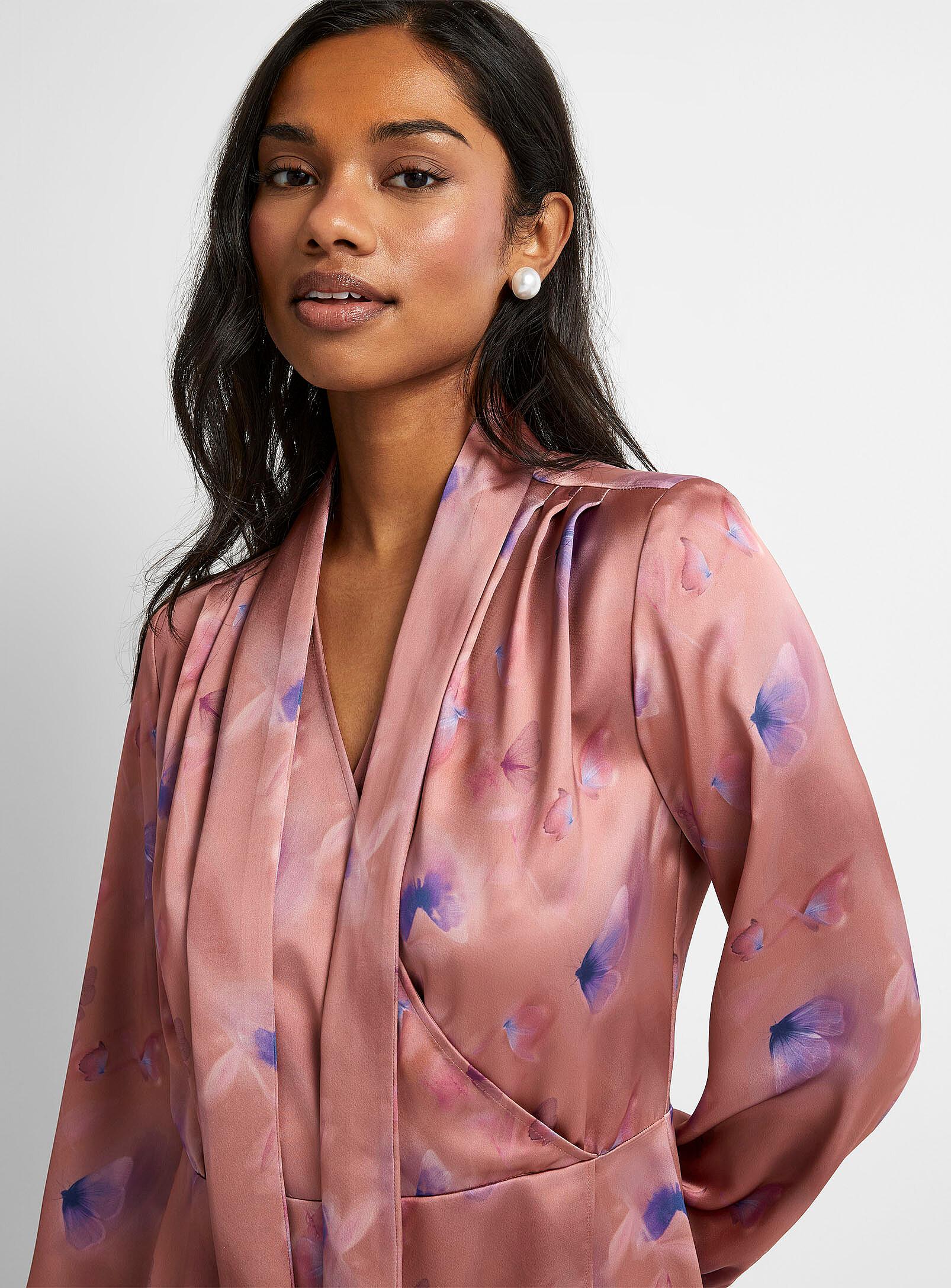 HUGO - Butterflies satin scarf-neck wraparound dress