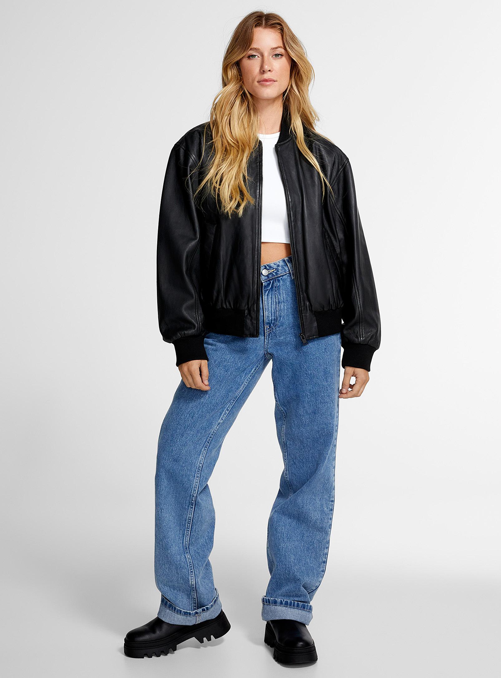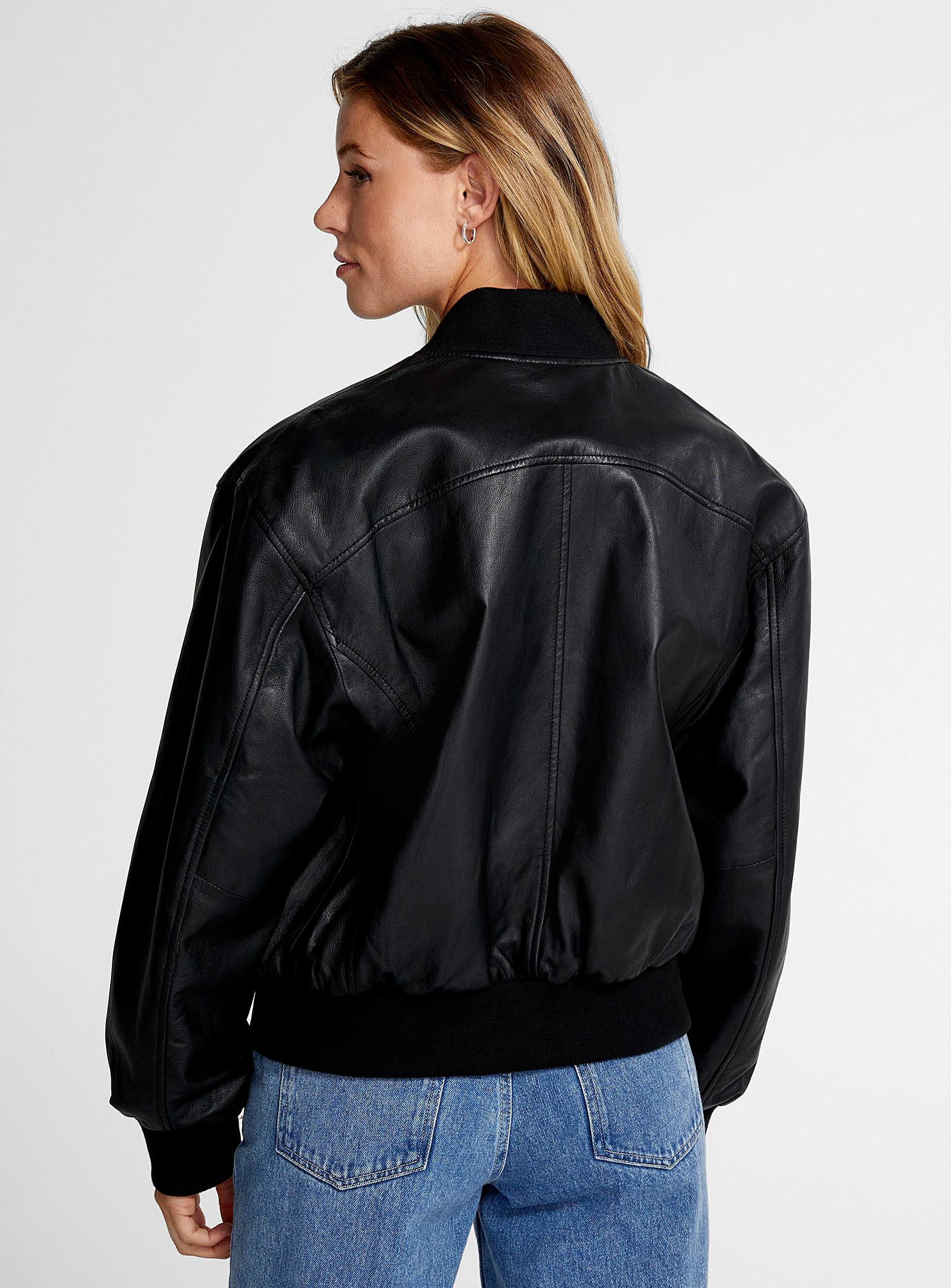 LAMARQUE - Belinna genuine leather bomber jacket LAMARQUE LAMARQUE at Icône Luxurious and supple genuine leather Polyester fabric lining Relaxed fit with drop shoulders Ribbed crew neck Snap-button slant pockets Ribbed edging Full-length zip The size of the item pictured is small