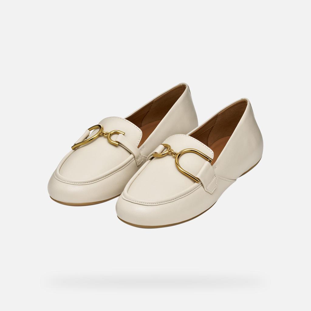 City-style loafer for women with a design that guarantees comfort and breathability all day long. City-style loafer for women with a design that guarantees comfort and breathability all day long. This sophisticated version features an upper made of supple nappa in a milk-white palette and has a classic aesthetic that oozes impeccable allure. Palmaria has been enhanced with a gorgeous metal detail and will elegantly round off office-appropriate looks and day-to-day casual dressing.