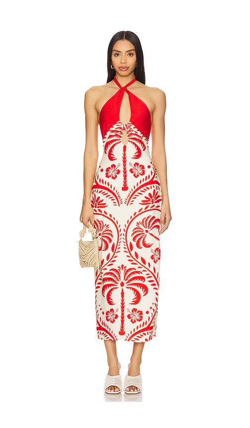 SEVEN WONDERS Isla Midi Dress in Red.