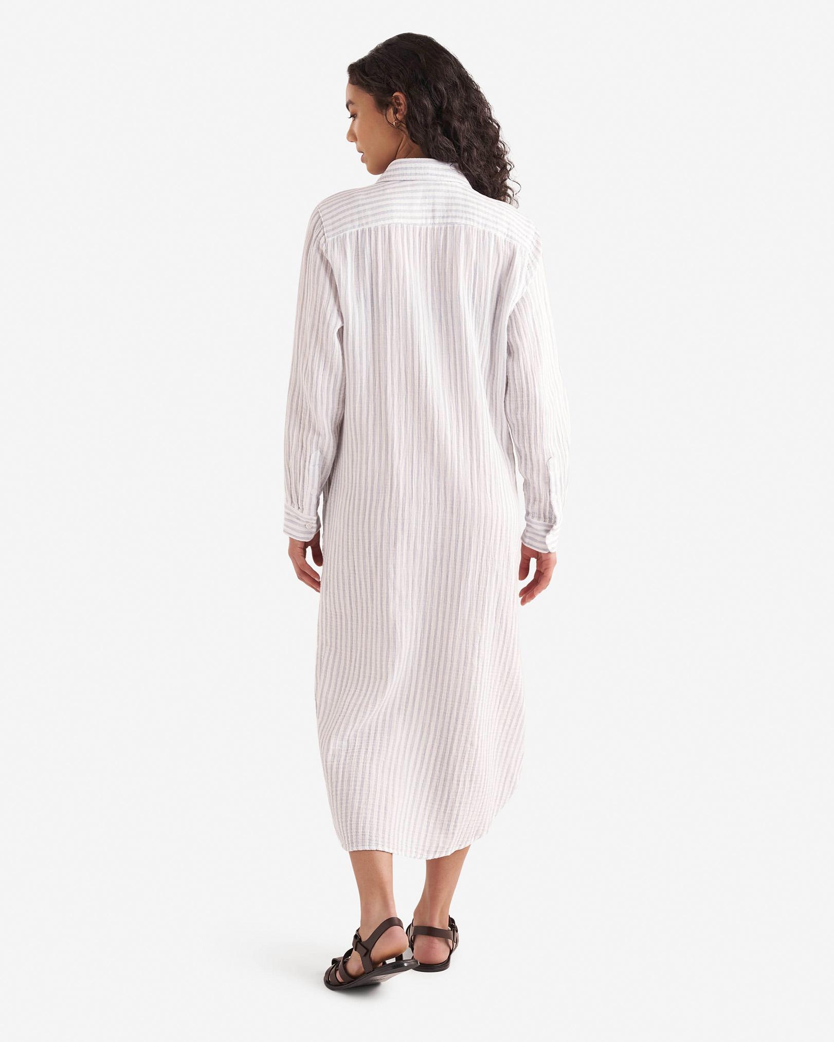 Roots Isla Cotton Gauze Shirt Dress in Egret