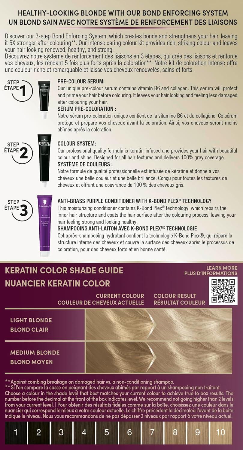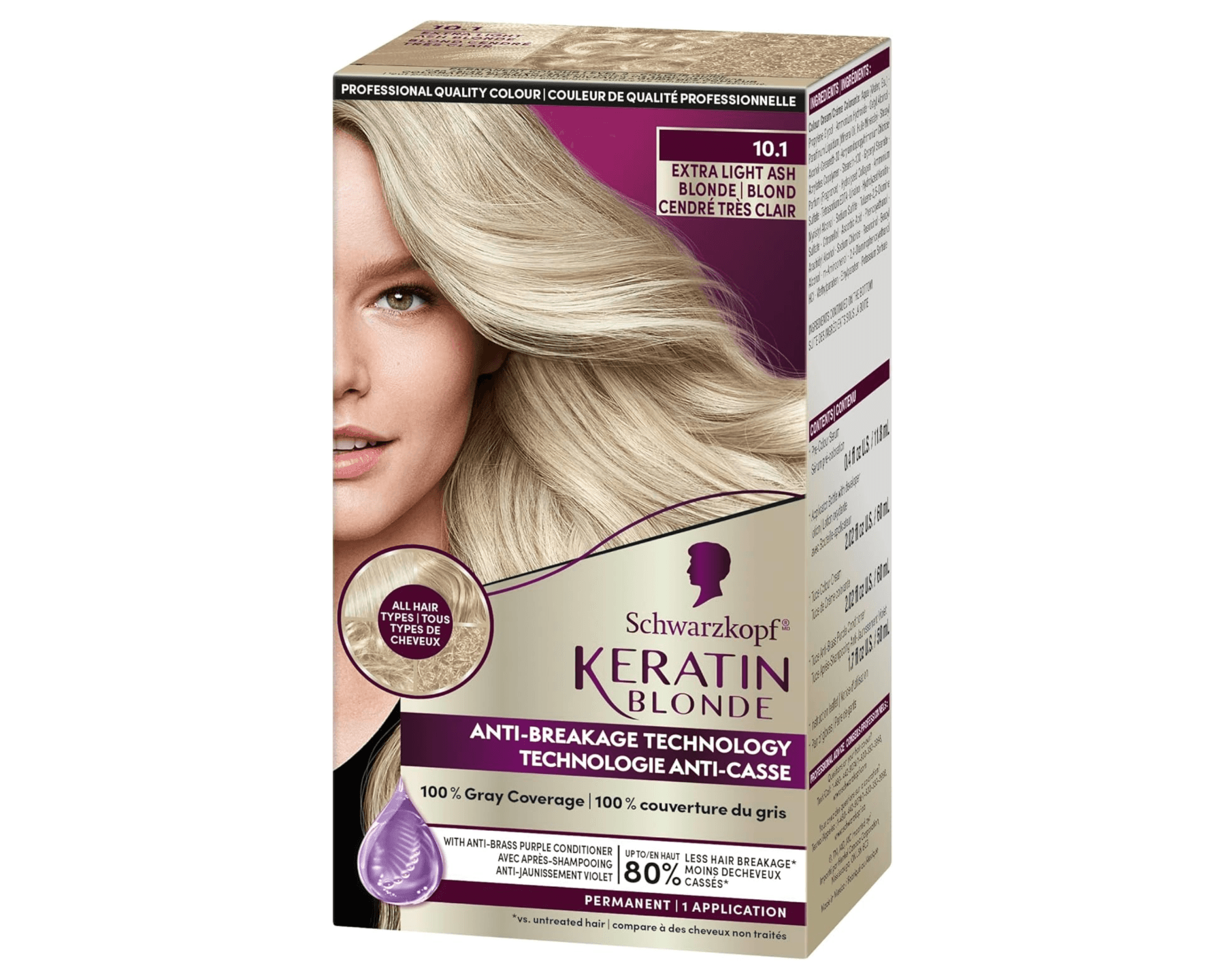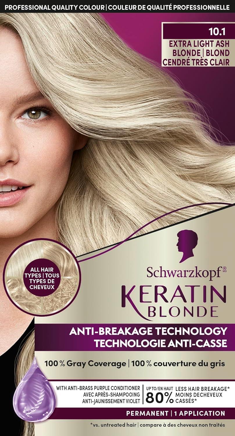 Schwarzkopf Keratin Color Permanent Hair Color Cream, 10.1 Extra Light Ash Blonde, 1 Pack/60ml