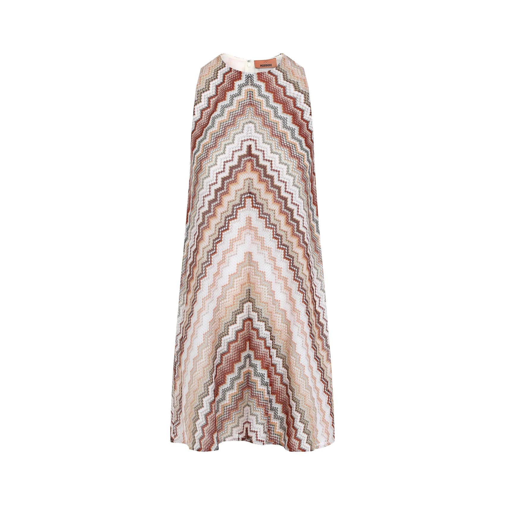 Looking for a dress that effortlessly mixes style and comfort? This eye-catching piece is perfect for those days when you want to feel both relaxed and chic. It's like your wardrobe's new best friend, ready for any occasion. Crafted from a blend of viscose, metallic fibers, and polyamide for a soft yet striking finish. Features a playful, multi-color pattern that's sure to turn heads. Sleeveless design offers versatility for layering or wearing solo.
