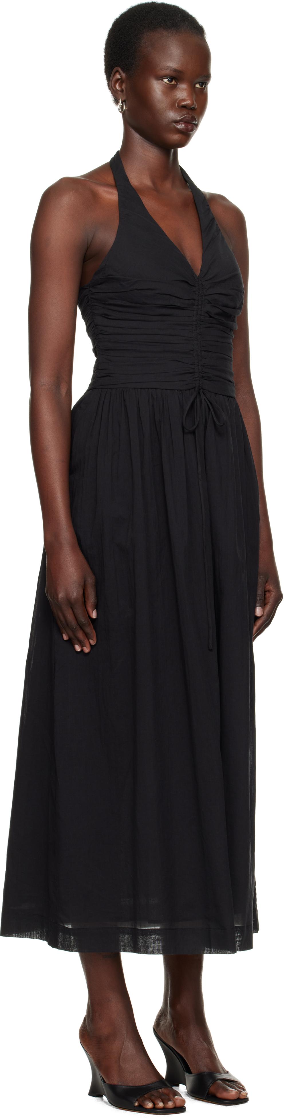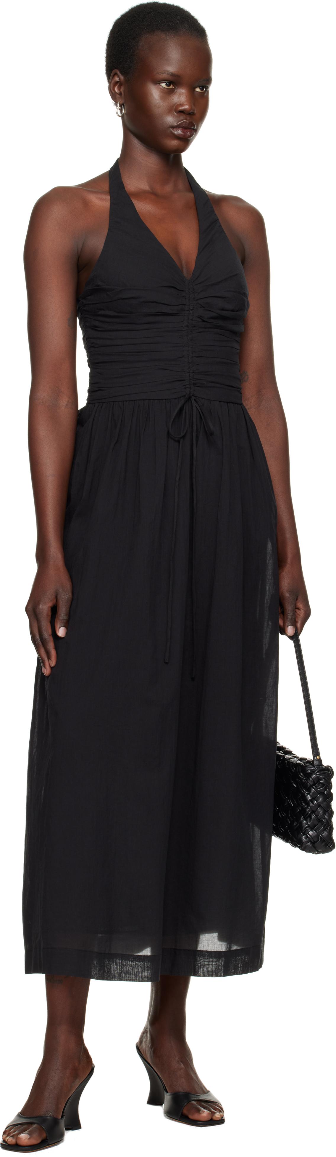 Lightweight plain-woven cotton maxi dress. · V-neck · Self-tie drawstring at front · Ruching at front and back · Seam pocket at sides · Fixed halter strap · Zip closure at back Supplier color: Black