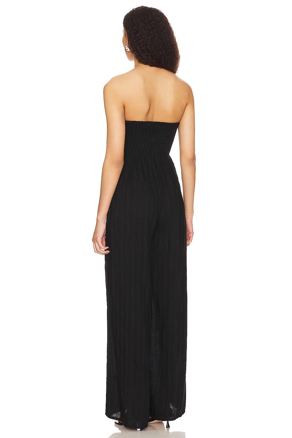 Pull-on styling with front tie closure at bust. Smocked bodice and back. Pleated lightweight linen fabric. Neckline to hem measures approx 55 in length 24 at the knee and 24 at the leg opening.