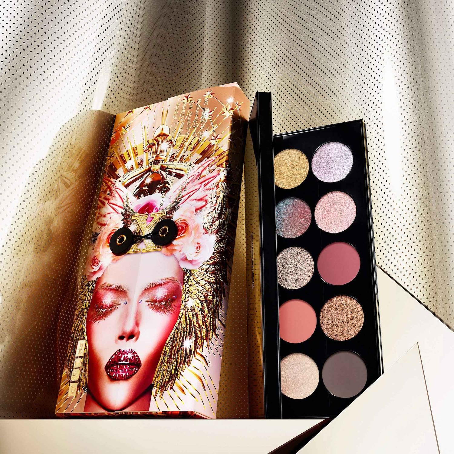 A palette with 10 starlit shadows presented in decadent colors and seductive finishes, ranging from velvet mattes and moonlit metallics to alluring astrals.