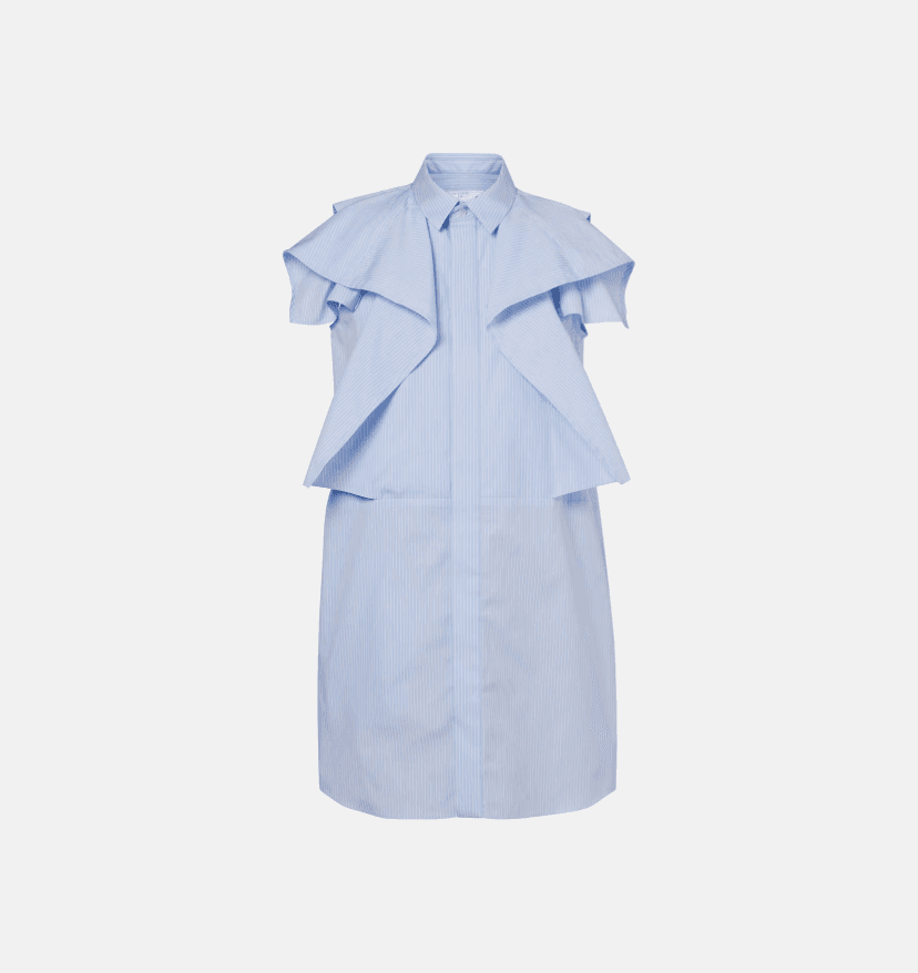 Perfect for effortless office ensembles and more, this striped minidress from Sacai is primed to become one of your everyday favorites. Made from cotton poplin, the style is completed with a pointed collar and fabric folds resembling voluminous ruffles.
