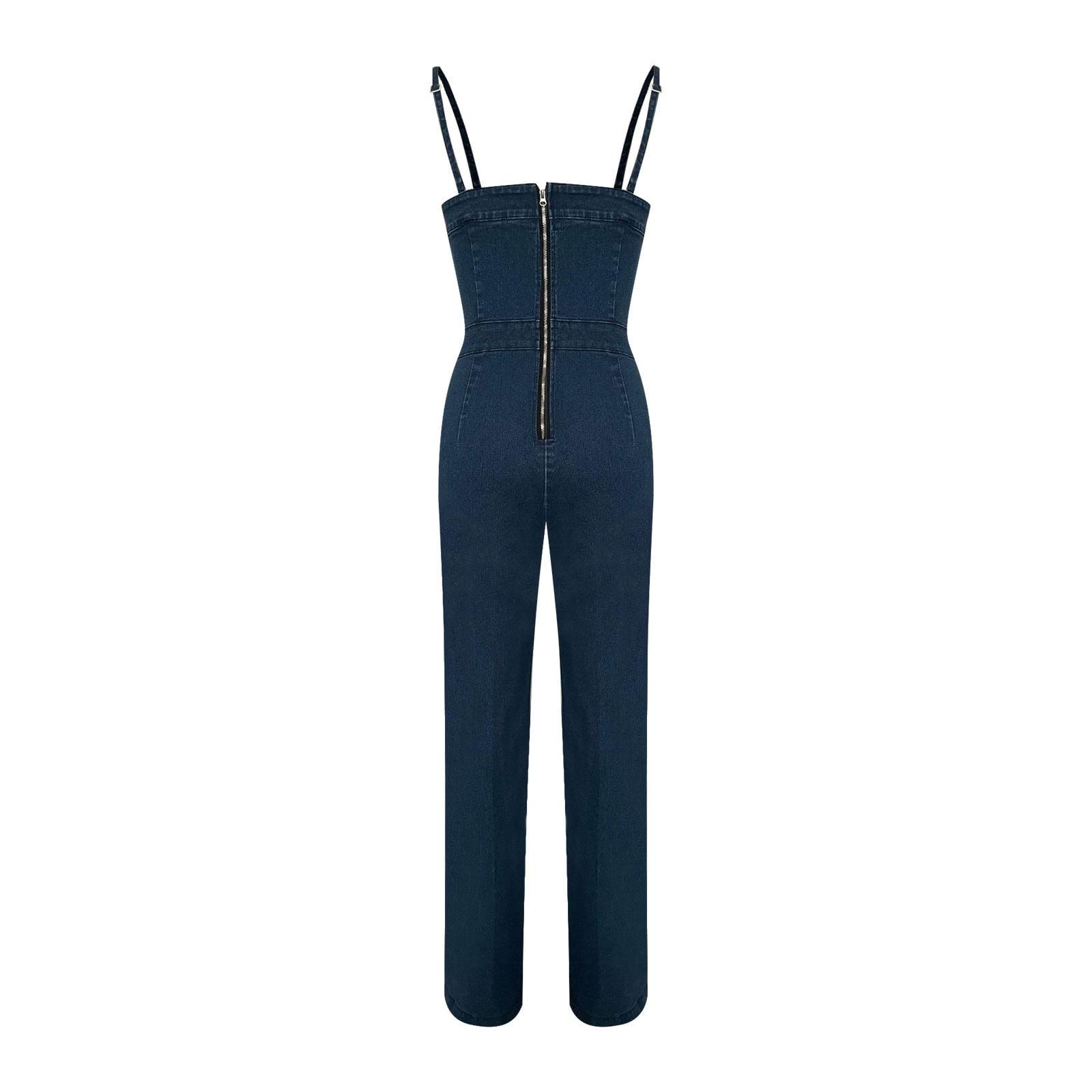 Women's Flare Denim Jumpsuits Vintage Distressed Adjustable Strap Stretchy Sleeveless One Piece Jeans Pants Rompers