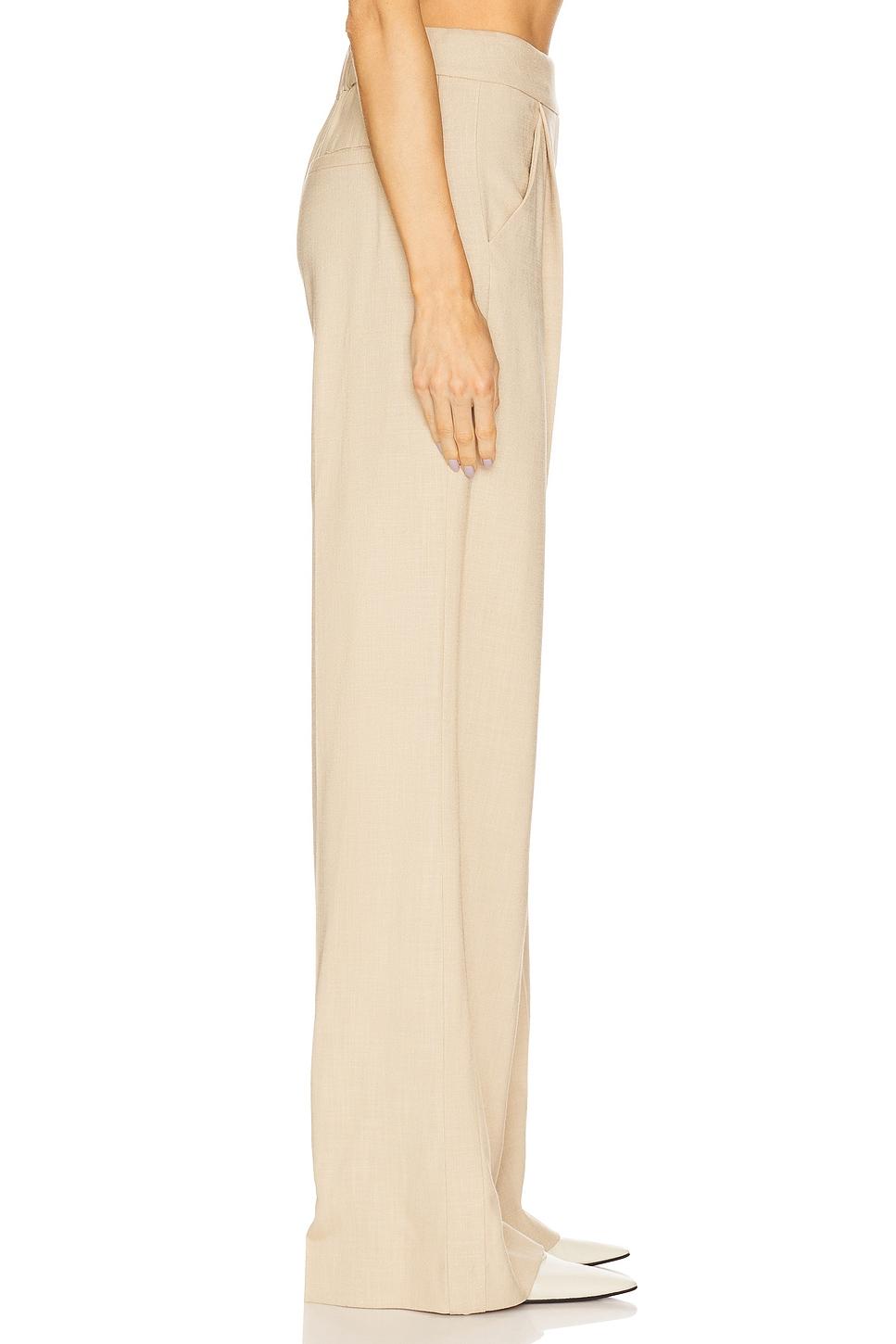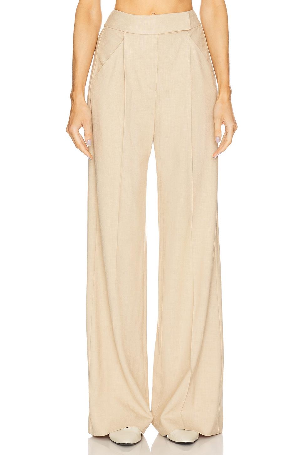 Self: 98% viscose, 2% elastane Lining: 95% polyester, 5% elastane Dry clean only Zip fly and hidden hook and bar closure Elastic at back waistline Side slant pockets and back welt pockets Midweight twill fabric with front pleats