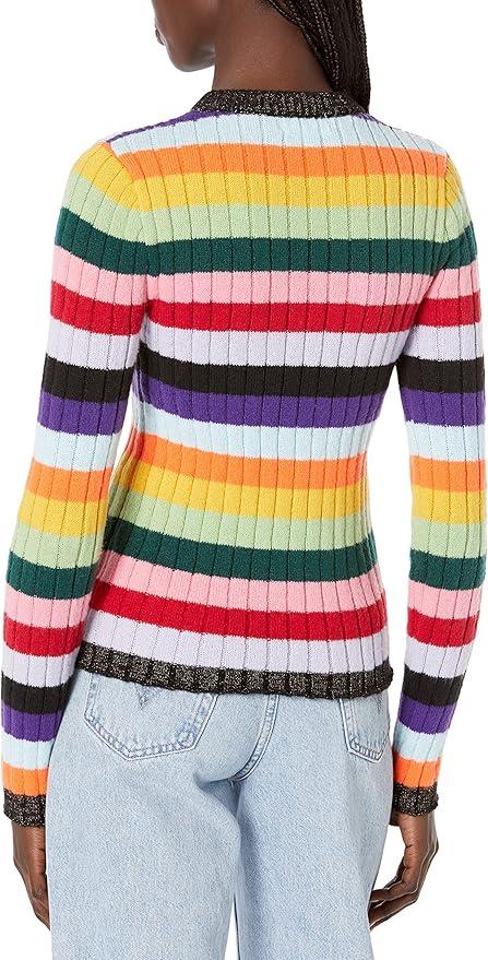 Call it nostalgia-core. The Leonie Sweater is a ribbed retro rainbow-stripe sweater with a fitted silhouette. Disclosure: We are a participant in the Amazon Services LLC Associates Program, an affiliate advertising program designed to provide a means for us to earn fees by linking to Amazon.ca and Affiliate sites.