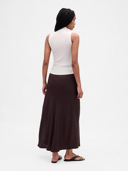 Smooth woven twill bias-cut easy maxi slip skirt. Elasticized waist. Side slit. Certain styles have an allover print. Made with 100% LENZING™ ECOVERO™ viscose fibers, which are derived from controlled or certified wood sources.