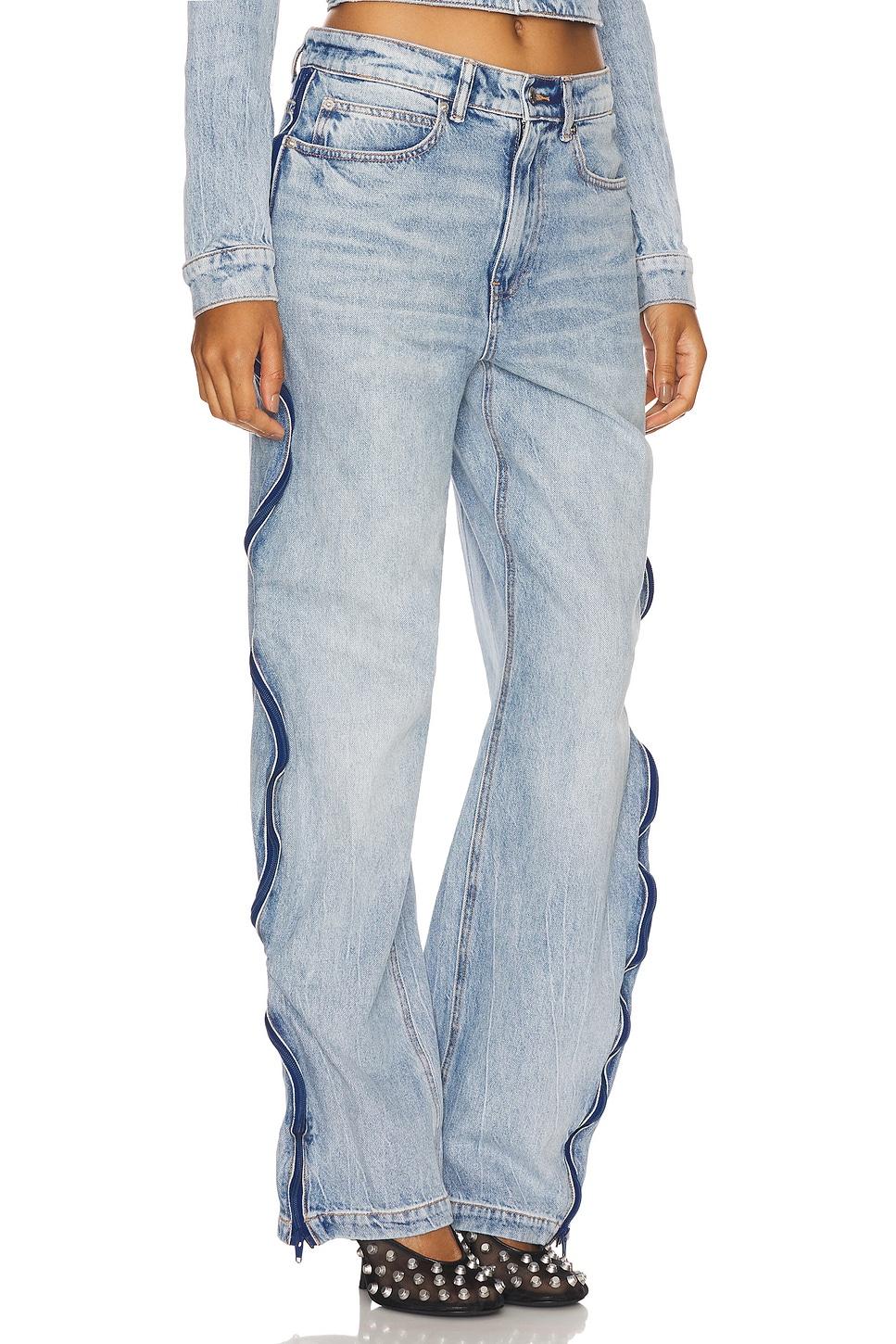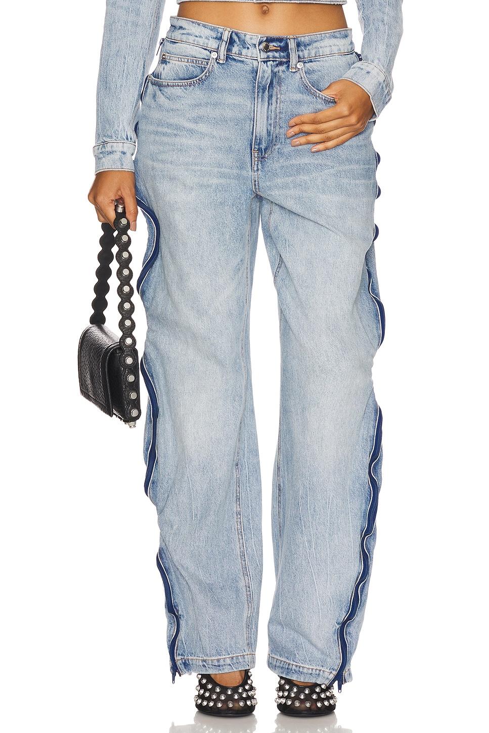 Zip fly with button closure 5-pocket design Side zip detailing with mesh panels and snap button pockets Intentional fading and light whiskering Heavyweight denim fabric 20" / 51 cm at the knee narrows to 16" / 41 cm at the leg opening