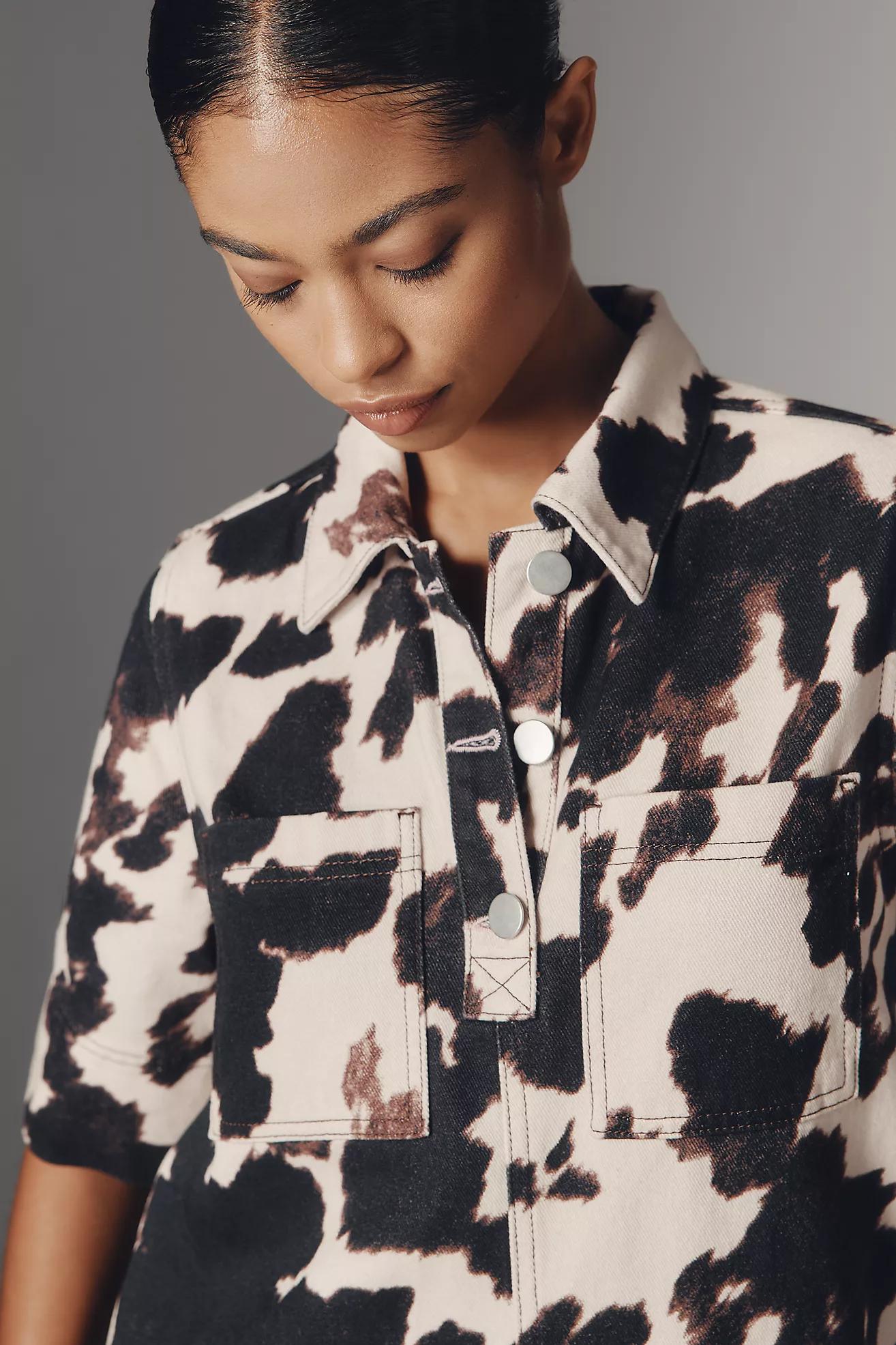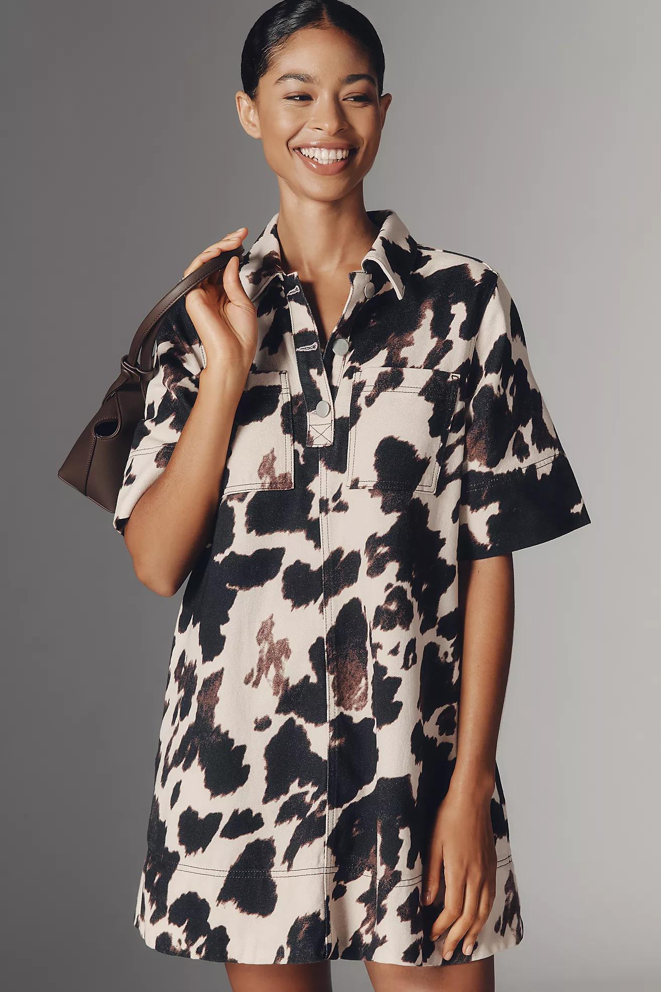The Jeannie Short-Sleeve Denim A-Line Mini Dress by Maeve