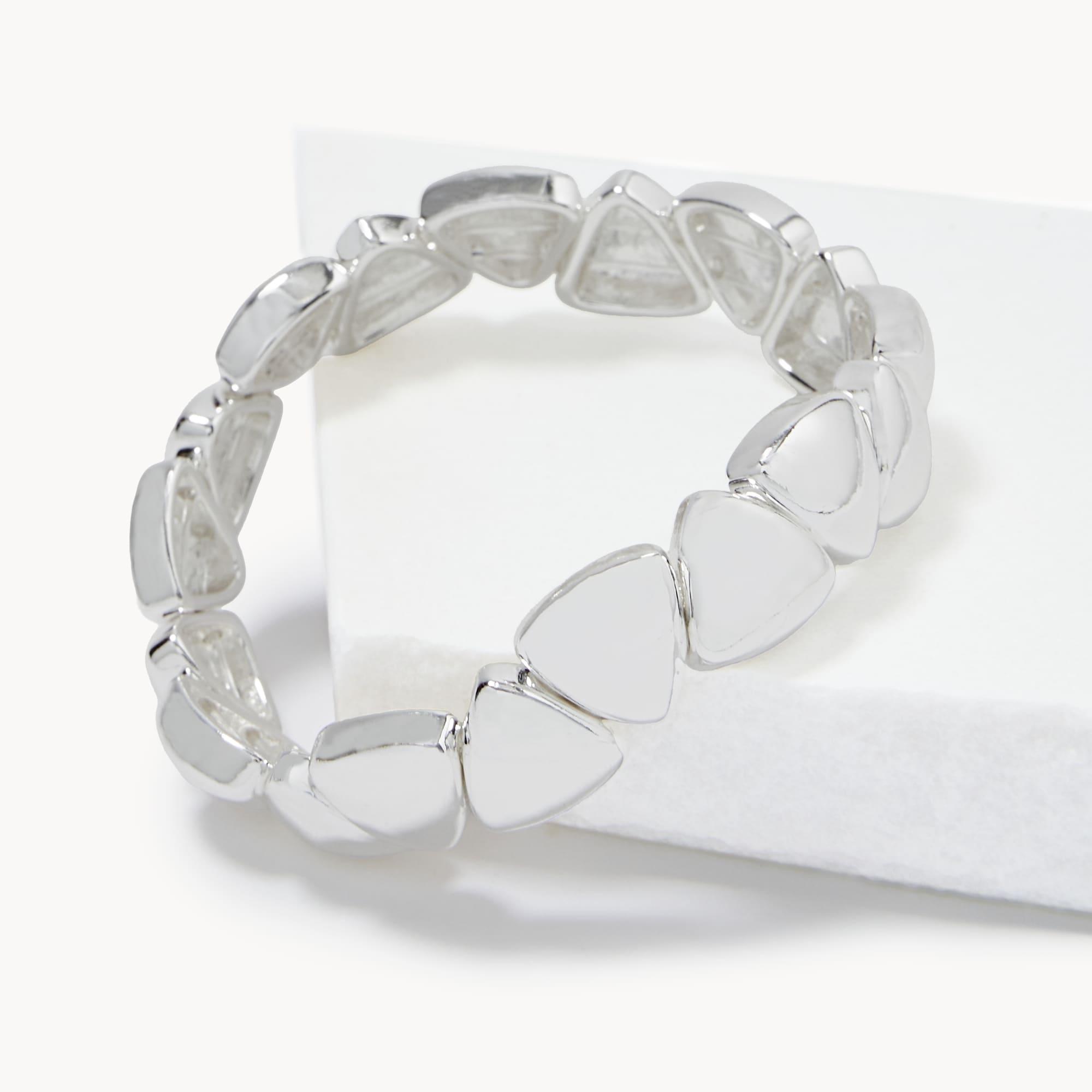 Dare to go angular? Add a modern edge to everyday and dressy looks alike with this women's metal triangle stretch bracelet. It features a silver-coloured finish and a flexible fit that's easy to slip on every time.