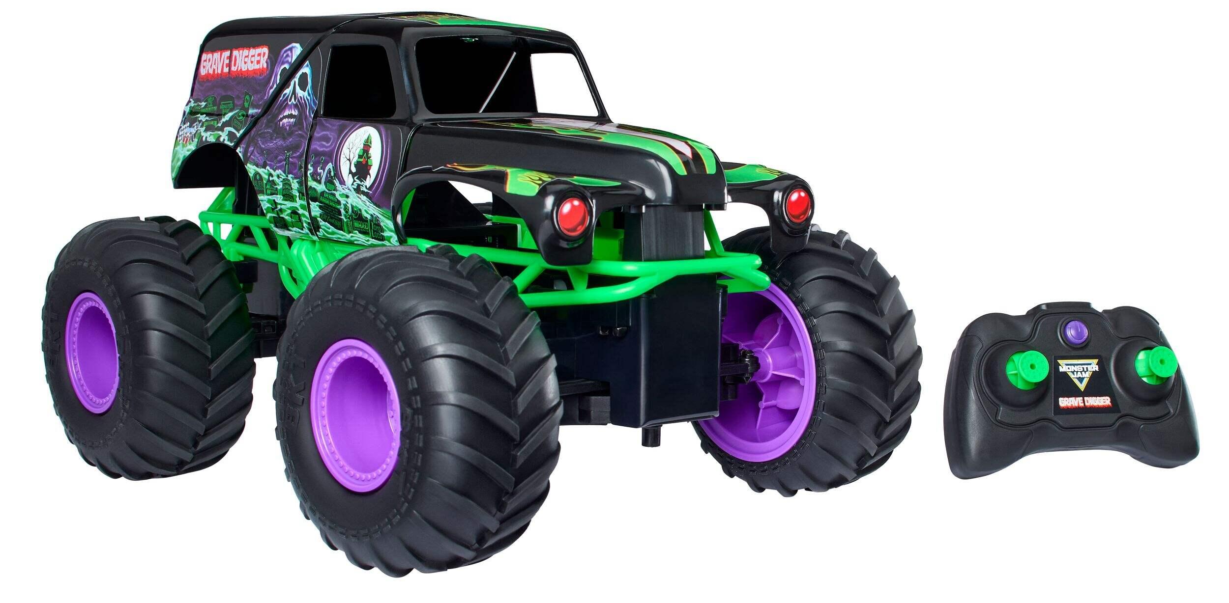 Two modes for smashing fun in 1:15 scale Full-function remote-control Pick up speed and smash into a wall for the 'crashed' version of Grave Digger, for spinning action as you drive