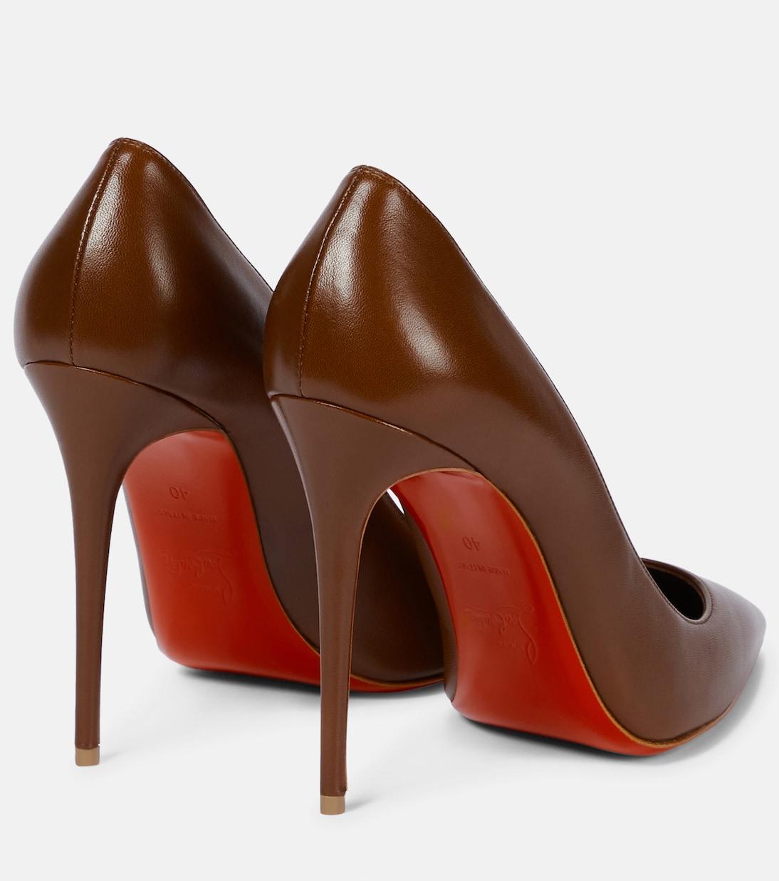 One of Christian Louboutin's most iconic creations, the Kate pumps are designed to enhance the foot's natural arch. From the label's Nudes range, this nappa leather pair is presented in rich brown – the seventh shade from the collection. Point toes and 100 mm heels create a seductive silhouette, but it's the signature lipstick-hued soles that have the scene-stealing power.