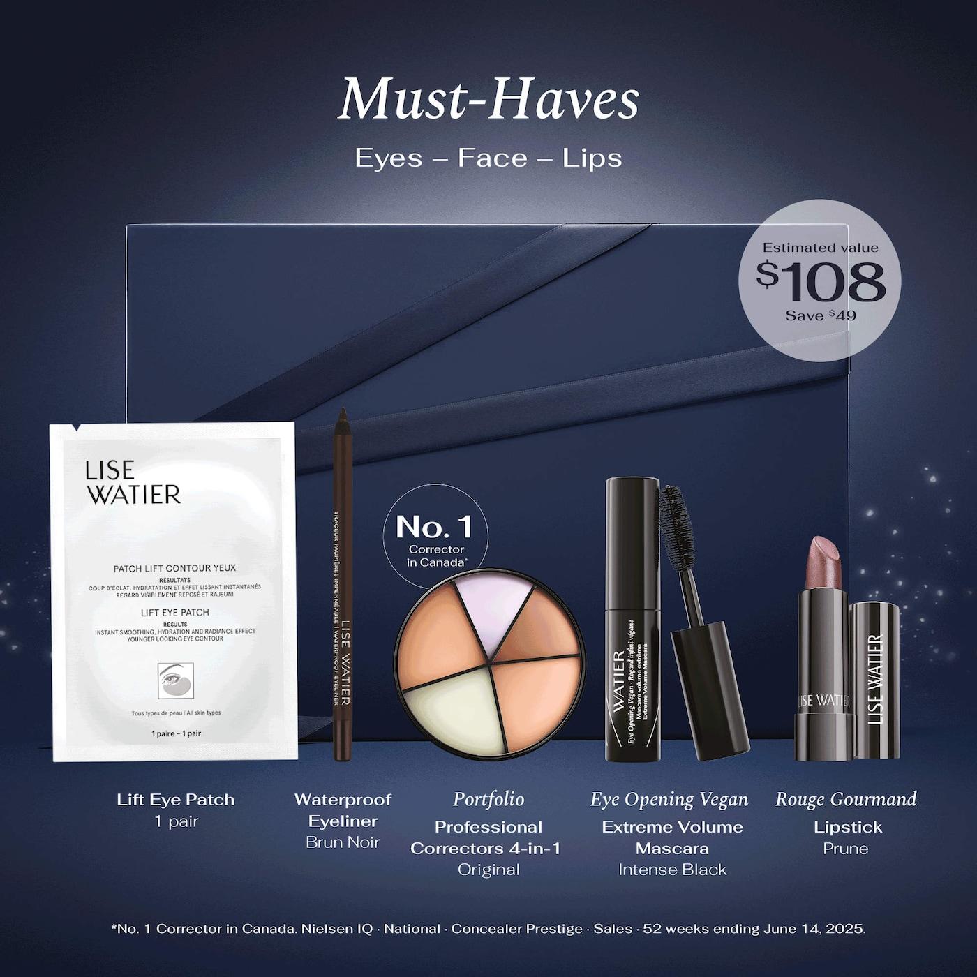 New Limited Edition What it is: A set that includes five must-haves for eyes, face and lips. Ingredient Callouts: Free of parabens, formaldehydes, formaldehyde-releasing agents, phthalates, mineral oil, retinyl palmitate, oxybenzone, coal tar, hydroquinone, sulfates SLS & SLES, triclocarban, triclosan, and contains less than one percent synthetic fragrance. These products are also vegan, gluten-free, and cruelty-free. What Else You Need to Know: This is a set that includes five must-haves for eyes, face and lips. This set includes the Eye Opening Vegan Extreme Volume Mascara, the Portfolio Professional Correctors 4-in-1, the Rouge Gourmand, 1 Pair Lift Eye Patches, and the Waterproof Eyeliner.