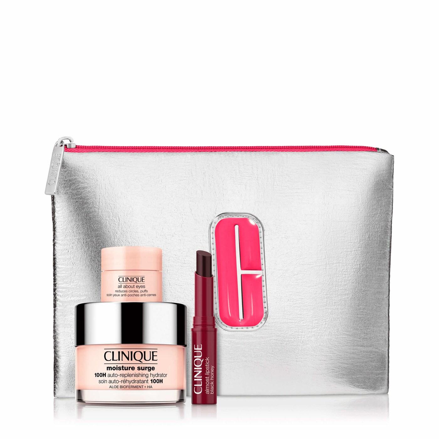 New What it is: An allergy-tested, fragrance-free skincare trio featuring CLINIQUE’s powerful 100H hydrator, an eye cream, and cult-classic Black Honey lipstick. Skin Type: Normal, Dry, and Combination Skincare Concerns: Dryness Ingredient Callouts: Free of parabens and phthalates.