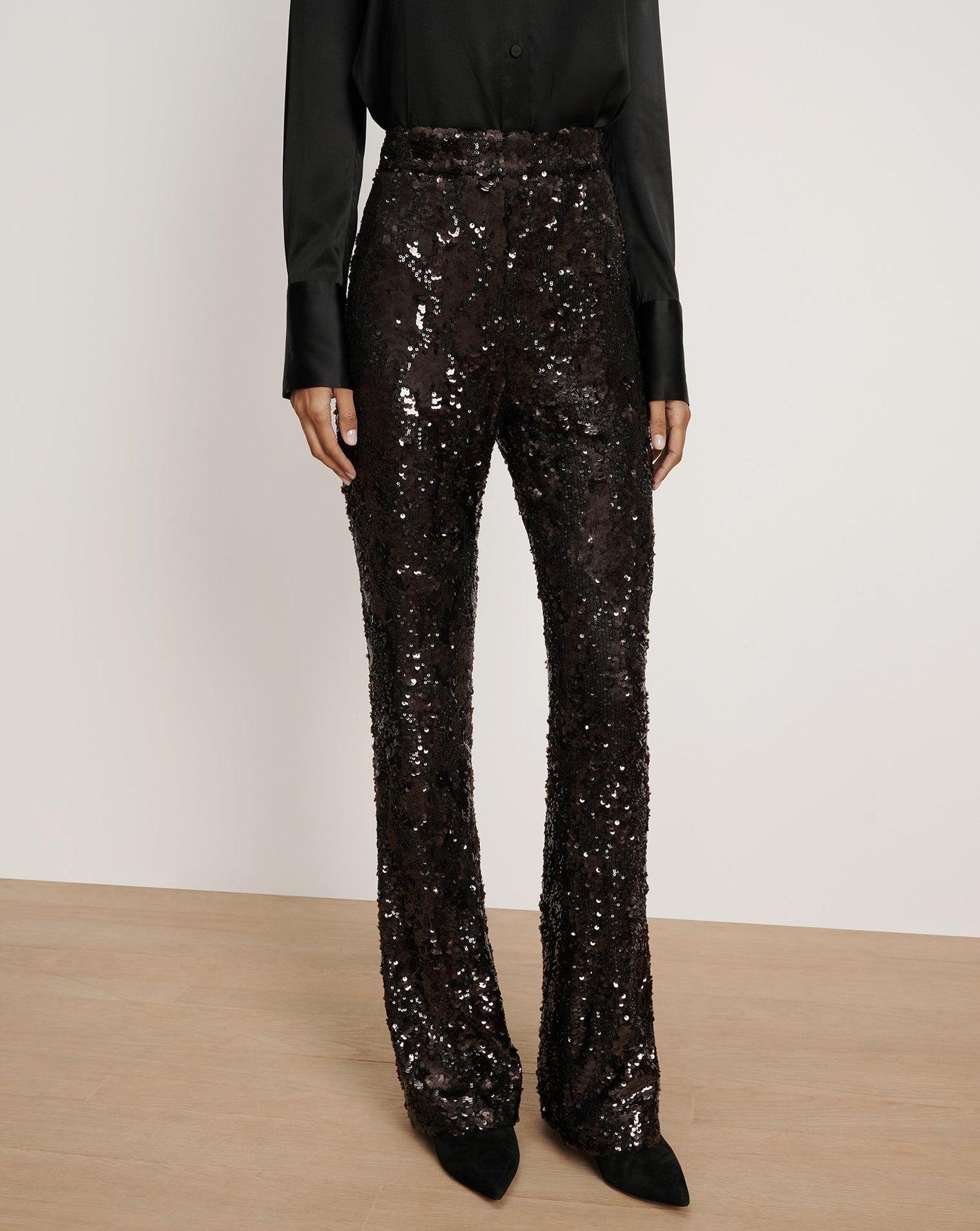 A pant that leaves lasting impressions. Embellished with all-over maroon sequins, the Matty features a slim-fitting, skinny-flare silhouette with a flattering high-rise waist. A back zipper closure finishes the look. Pair with a plain T-shirt to let them really shine, or style with the matching Matty blouse for a striking set.