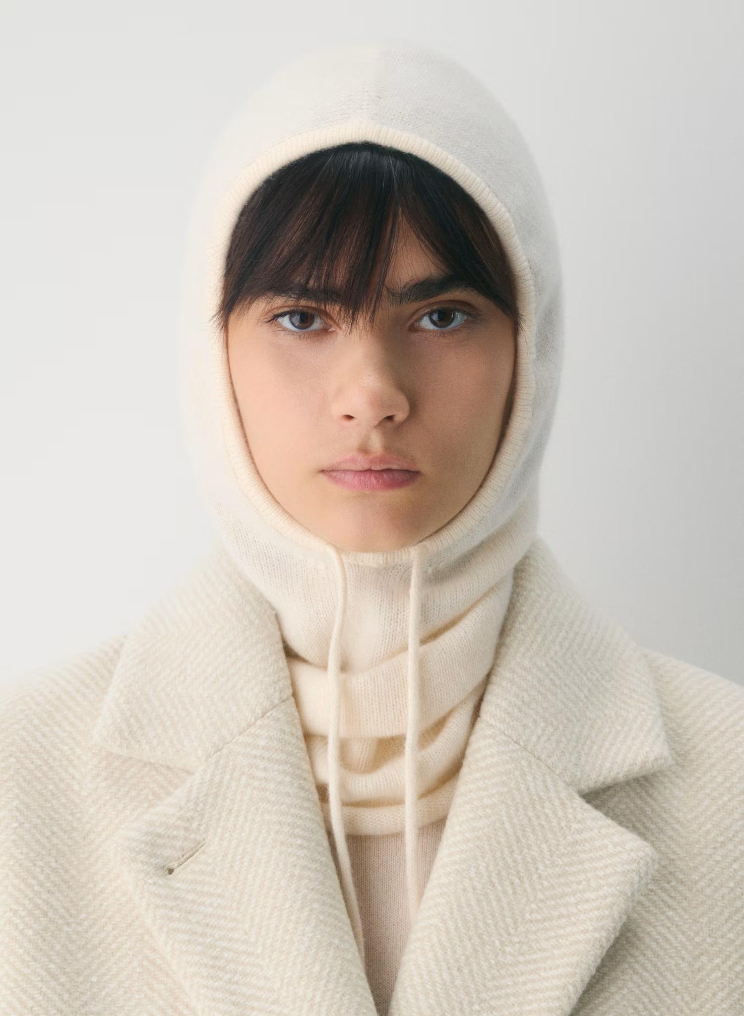 This is a hood with a rolled hem and drawstring for a customizable fit. It's knit with Aritzia’s Cashmere — 100% cashmere yarn coveted for its signature softness and warmth. The finest available. This cashmere is verified to The Good Cashmere Standard®. It's constructed with a Jersey stitch for a soft drape and a smooth, flat feel.